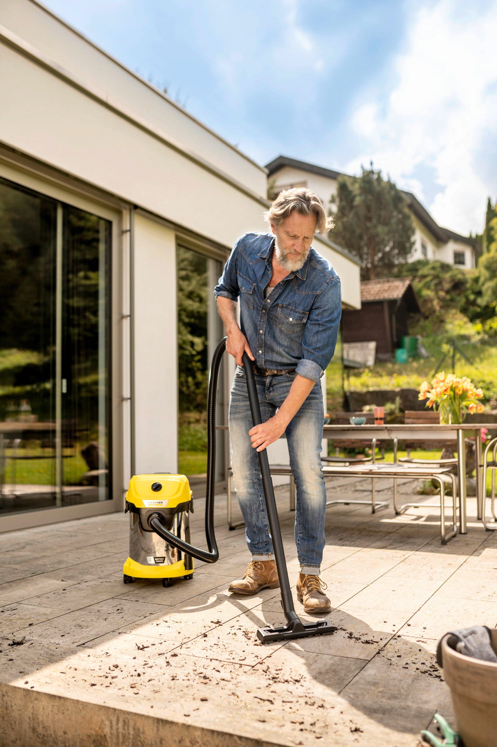Med en sugeffekt på 75 W och en robust 17 liters behållare i rostfritt stål tar dammsugaren effektivt bort både torr smuts, damm och mindre mängder vätska. Den passar som våt och torrdammsugare för bilens interiör, golvmattor och bagageutrymme samt för verkstadsgolv, källare eller garage. Även vid renovering eller rengöring av terrass och gård är den sladdlösa konstruktionen en fördel.