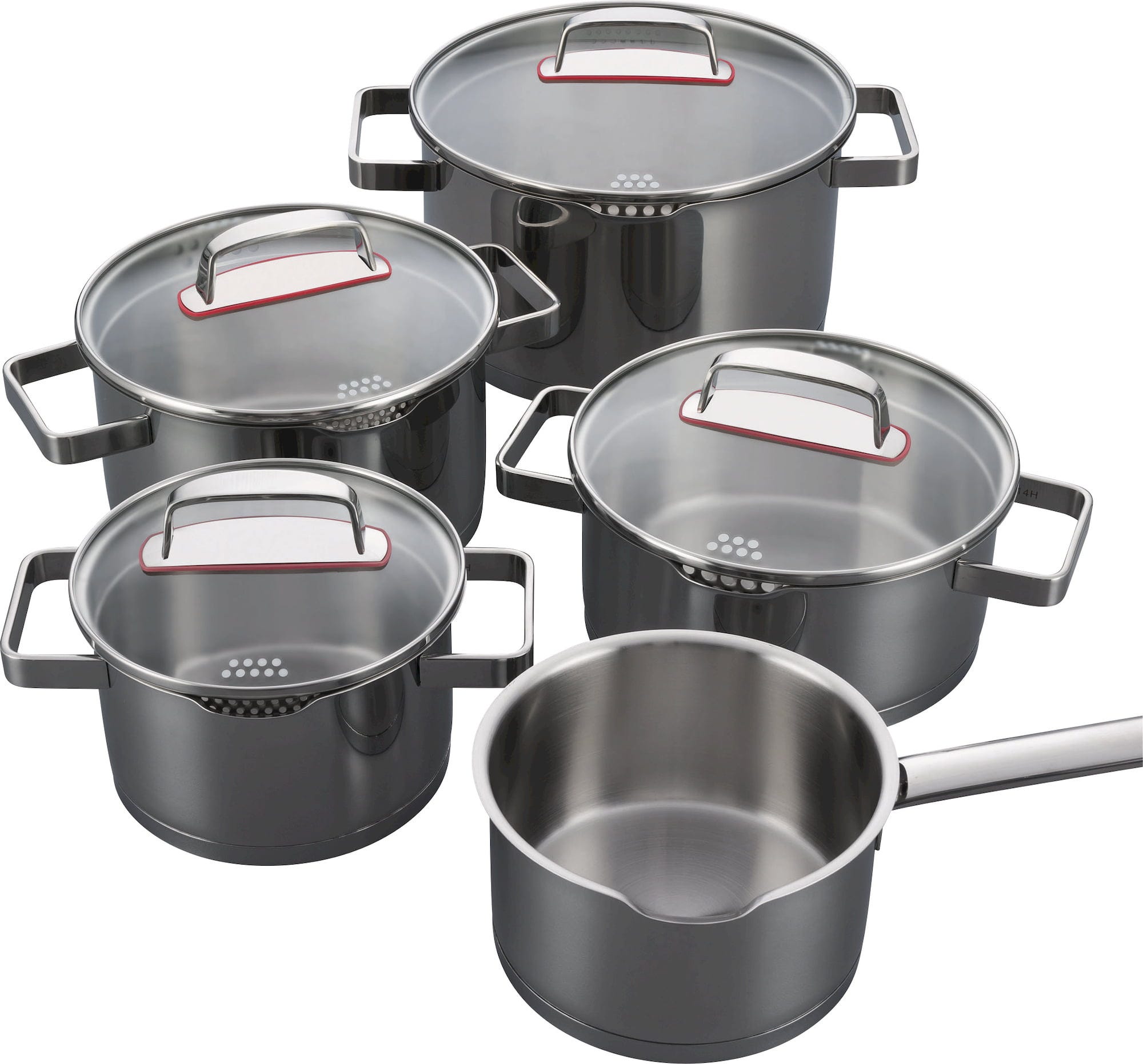 Det smarta kokkärlssetet i 9 delar från KELOmat är tillverkat av rostfritt stål 18/10 och levereras med olika grytstorlekar och moderna glaslock. Setet ingår i serien "Creation S". Det tål diskmaskin, och sidhandtagen samt lockets handtag blir inte varma under användning. Grytorna får inga missfärgningar på botten, vare sig på äldre vedspisar eller elektriska spisar, även efter lång tids användning, och övertygar med sin tidlösa och professionella design. Setet gör matlagningen till ett nöje, håller maten varm länge även efter att plattan stängts av och är CO2-neutralt producerat i Österrike. Handgjort i Österrike sedan 1550!