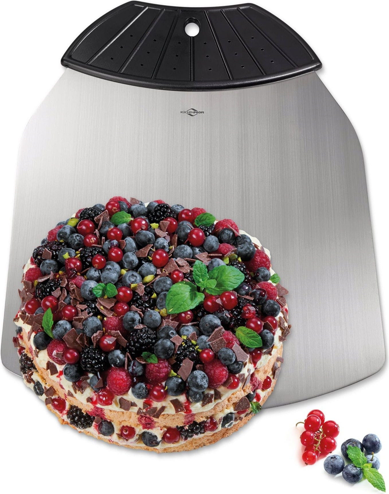 Den här kökshjälpen är ett måste - både praktisk och mångsidig. Den högkvalitativa plattan i rostfritt stål har en extra tunn kant som lätt glider in under tårtor, kakor, pizzor och småkakor för att lossa dem från form eller plåt.