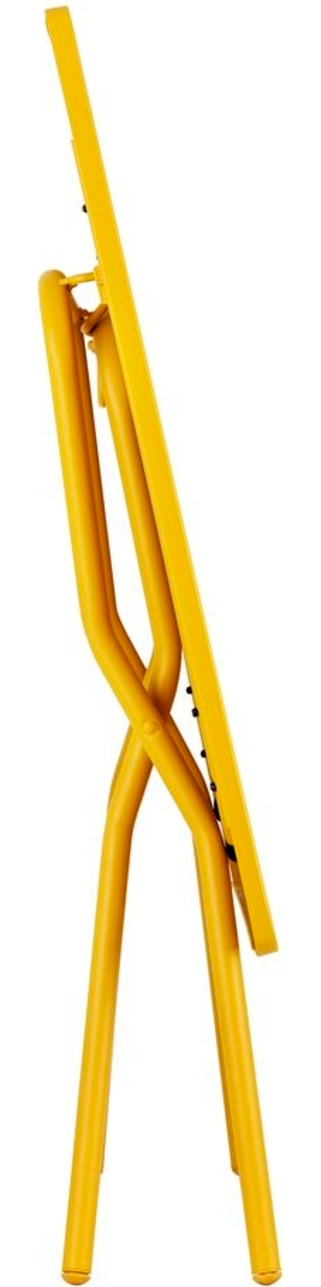 Om underlaget är ojämnt justerar du enkelt de ställbara fötterna så att bordet står stabilt och stadigt. När du vill frigöra yta på terrassen eller balkongen fäller du ihop bordet med en hand tack vare det intuitiva handtaget. I hopfällt läge står det av sig självt, vilket gör det extra smidigt att förvara.