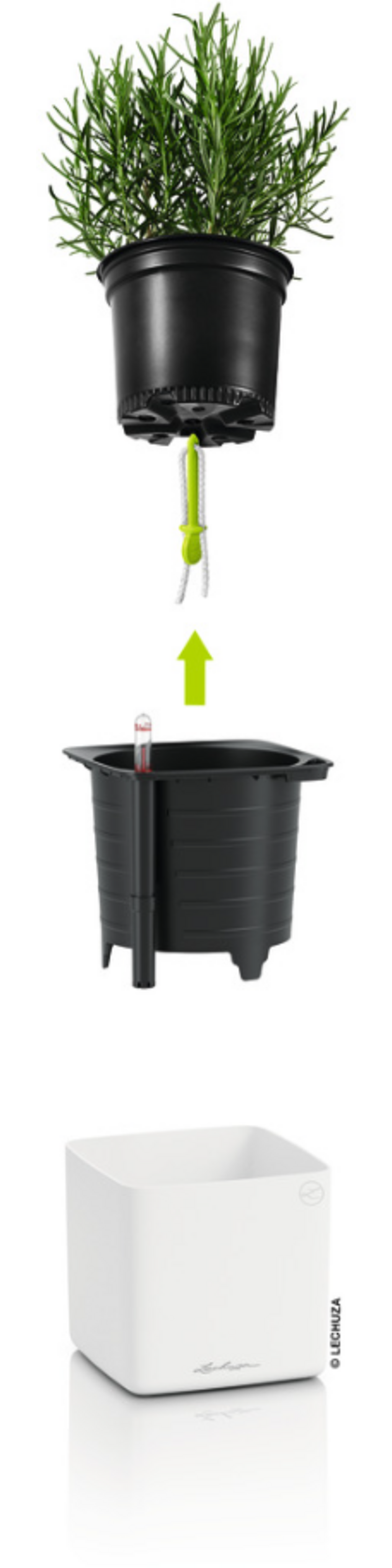 Denna kompakta bordskruka tillför stilren elegans i varje hem. Den högkvalitativa ytan och den tydliga kubformen gör den till ett riktigt blickfång - oavsett om den placeras i köket, vardagsrummet eller på fönsterbrädan. Trots sitt smidiga format framhäver den växter på ett perfekt sätt och ger rummet en modern känsla.