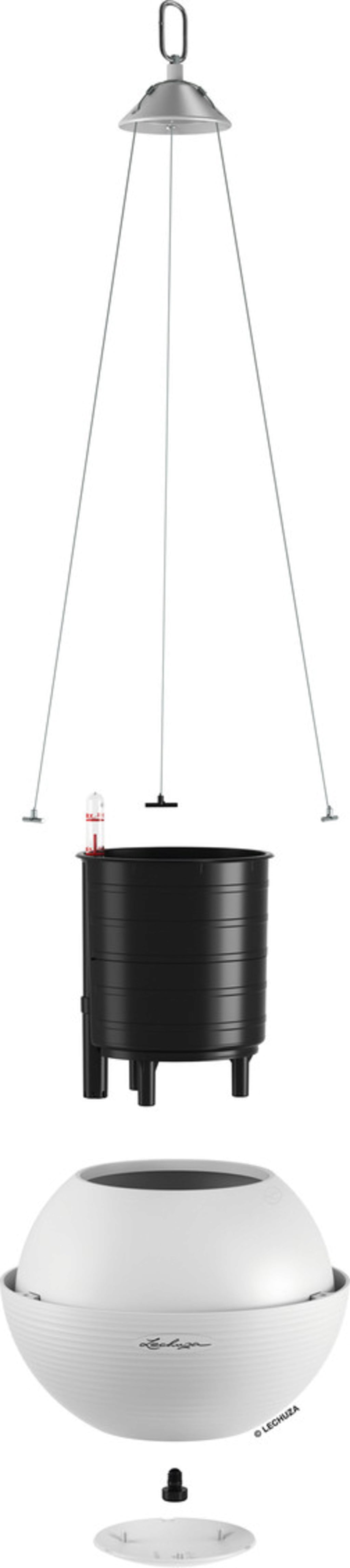 Innehåll: Allt-i-ett-Set, bestående av en krukväxt, avtagbar växtinsats, Lechuza-bevattningset & upphängning i rostfritt stål