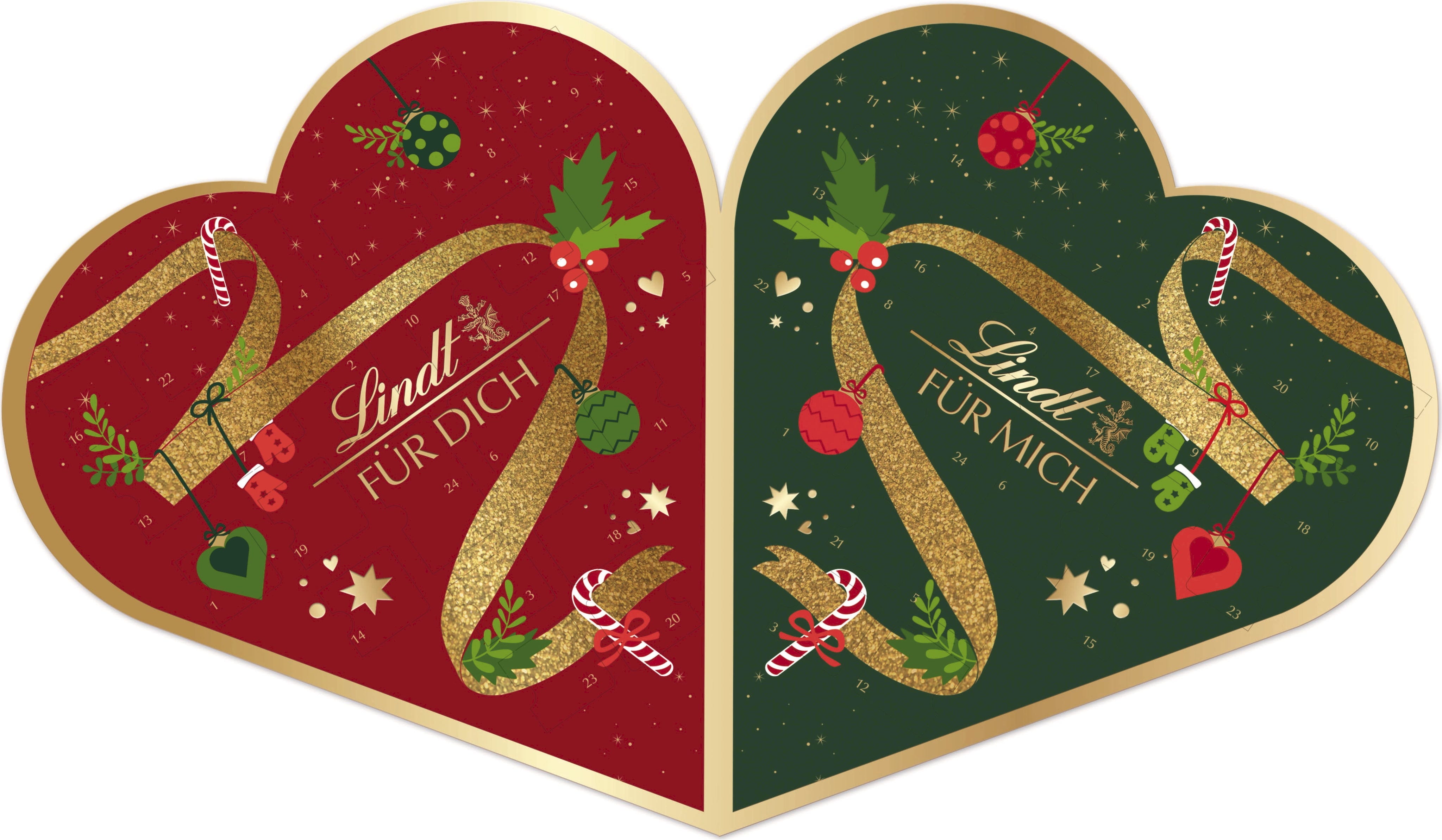 Ge dina nära och kära en extra speciell gåva med Lindts Pärchen-adventskalender. Finaste mjölkchoklad och praliner med noggrant utvalda fyllningar, allt förpackat i en klassisk hjärtform som får vem som helst att smälta! Njut av chokladfylld julglädje tillsammans - varje dag.