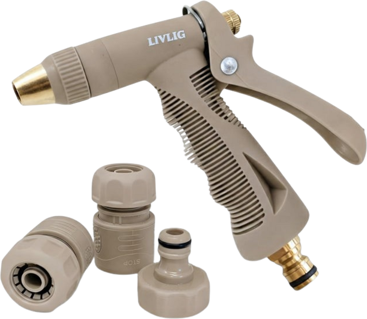 Detta praktiska set matchar perfekt färgmässigt med trädgårdsslangarna från Livlig och innehåller allt du behöver för att komma igång med bevattningen. Det är inte bara funktionellt utan också riktigt snyggt - vilket gör trädgårdsarbetet ännu roligare.