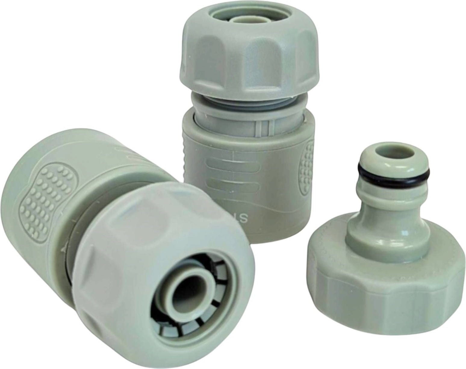 Detta praktiska och stilrena set gör det enkelt att ansluta din trädgårdsslang säkert och utan dropp. Ett självklart val för smidig bevattning som underlättar din vardag i trädgården.