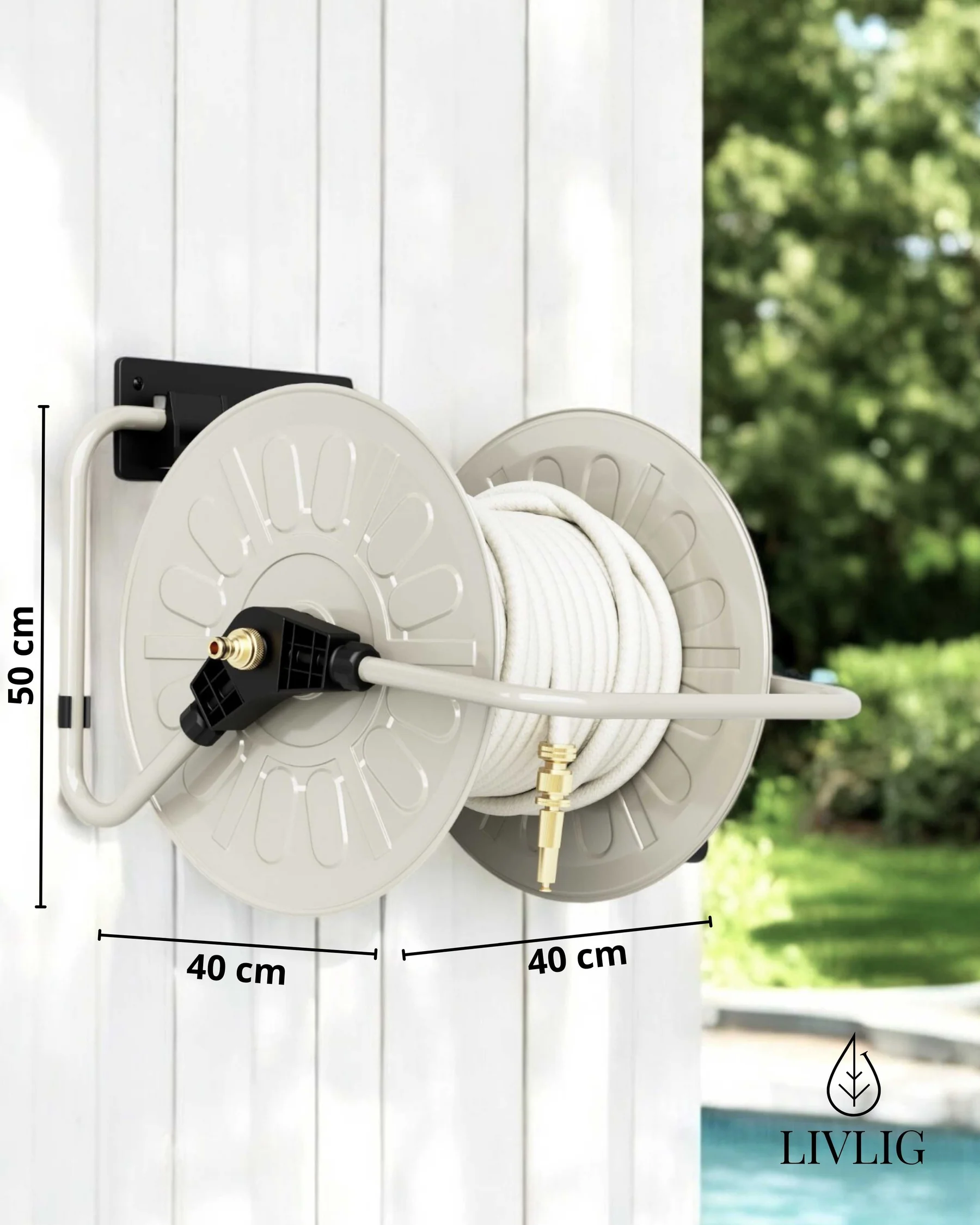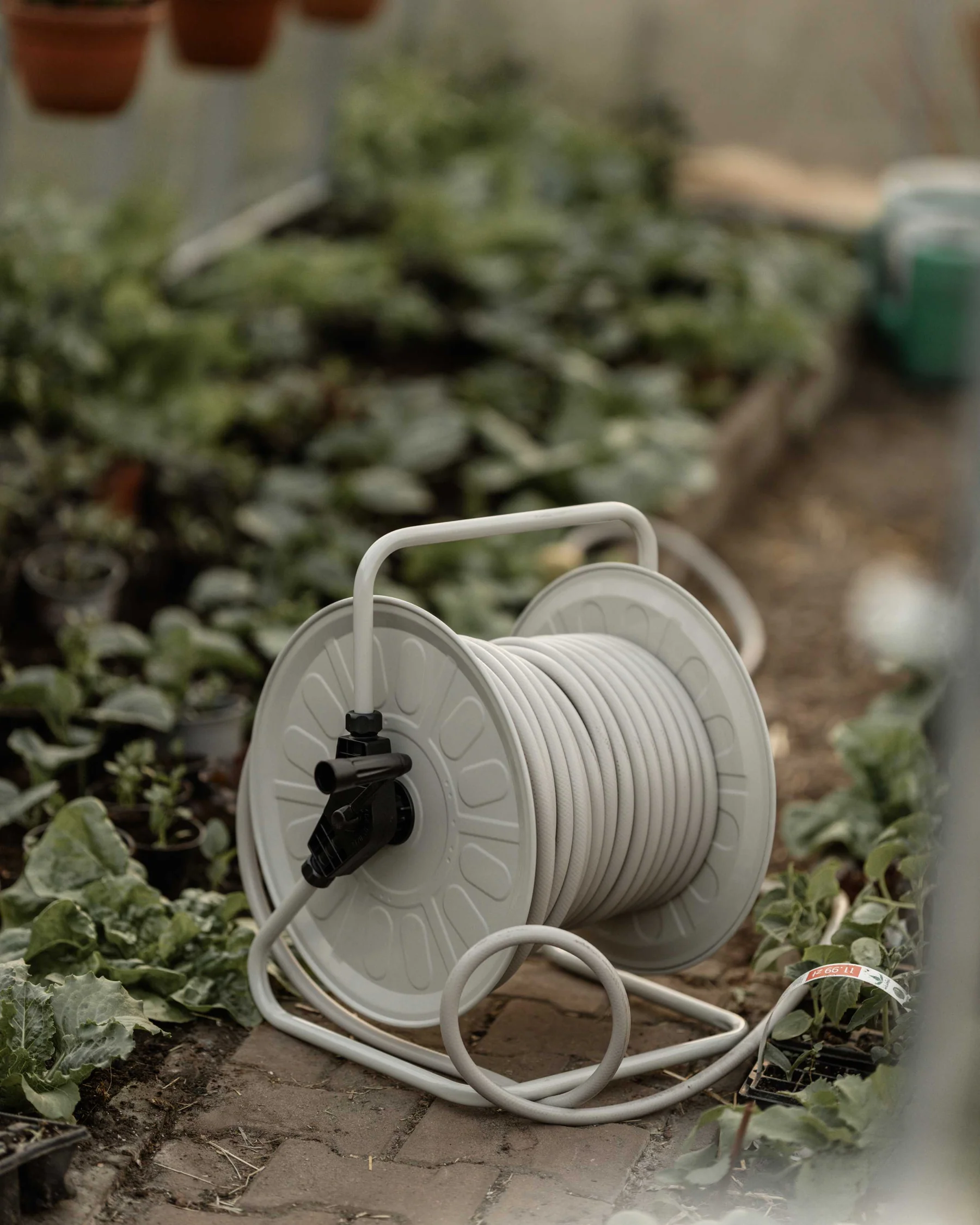 Med LIVLIG slangvindan i robust metall kan du ge ditt trädgårdsarbete system och stil. Denna högkvalitativa förvaringslösning imponerar inte bara med sin funktionalitet, utan också med sin hållbara design. Oavsett om den monteras på väggen eller används på golvet, anpassar sig denna slangvinda till dina behov och säkerställer enkel upprullning för varje applikation.