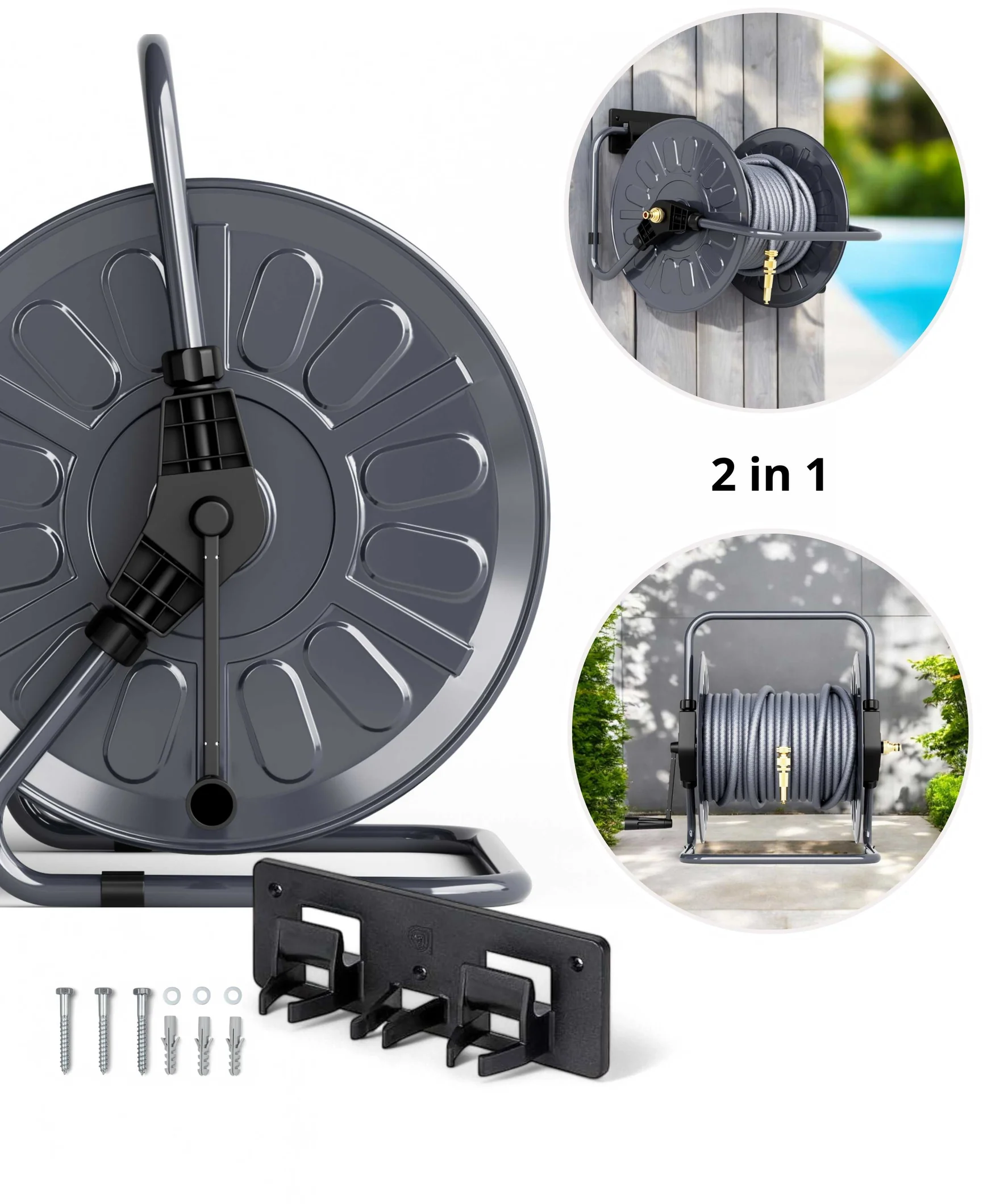 Livlig53 Slangvinda av Metall, Antracit