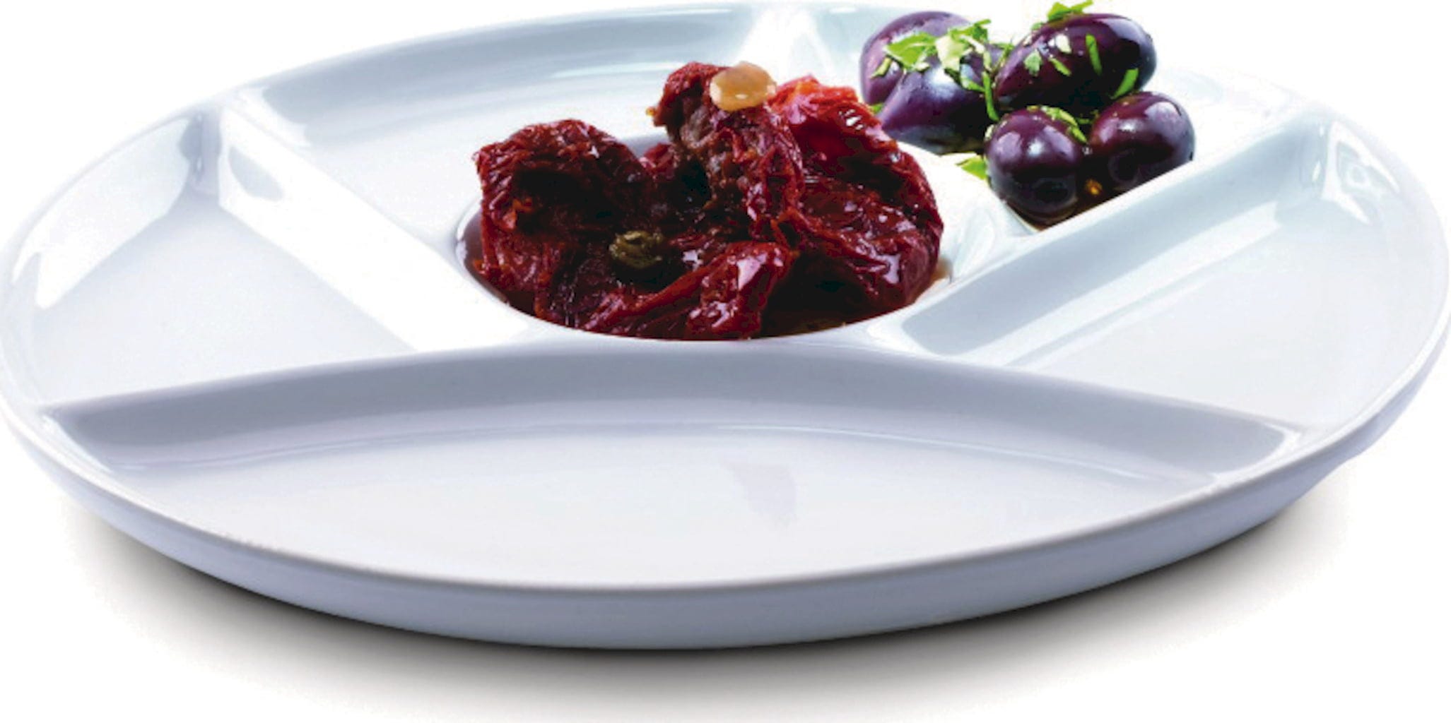 Skapa struktur på matbordet med detta sexdelars set i strålande vitt porslin och njut av hela variationen av dina favoriträtter utan att smaker blandas! Tack vare den smarta uppdelningen i sex separata fack kan kött, tillbehör, såser och dippar serveras snyggt åtskilda - perfekt för fonduekvällar, grillfester eller som snackstallrik för antipasti och fingerfood.