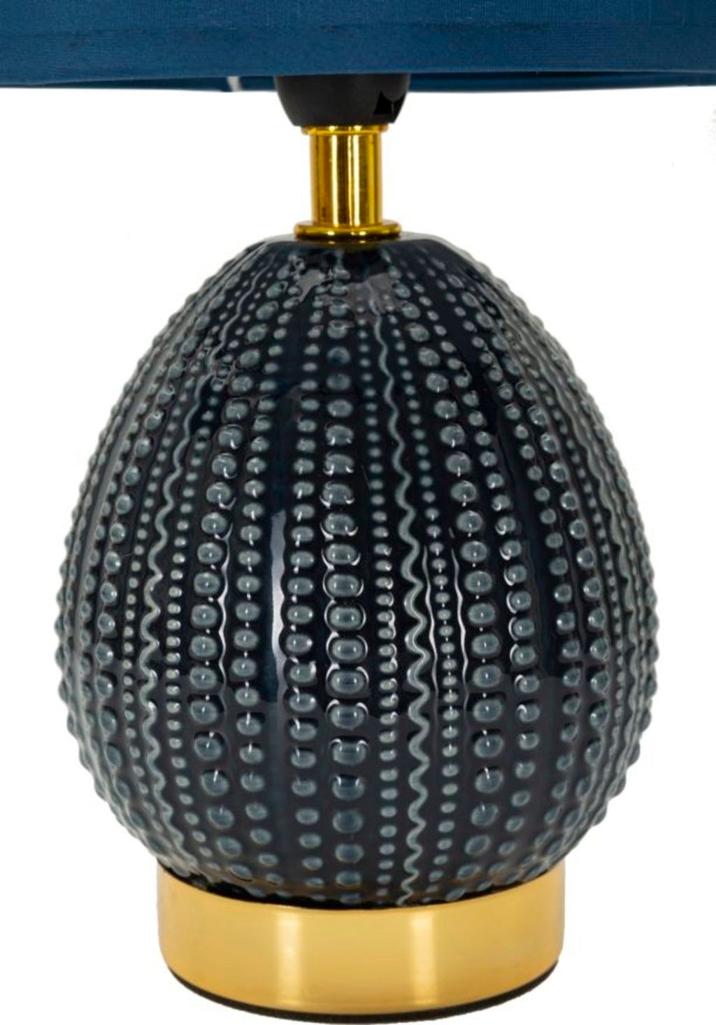 Ge ditt rum modern stil och subtil ljusstyrka på ett ögonblick med den här eleganta sänglampan. Lampans bas i ljus, tidlös blå färg har en unik, fin reliefdekoration av oregelbundna prickar. Denna okonventionella textur ger en modern, märkbar accent som ändå utstrålar lugn.