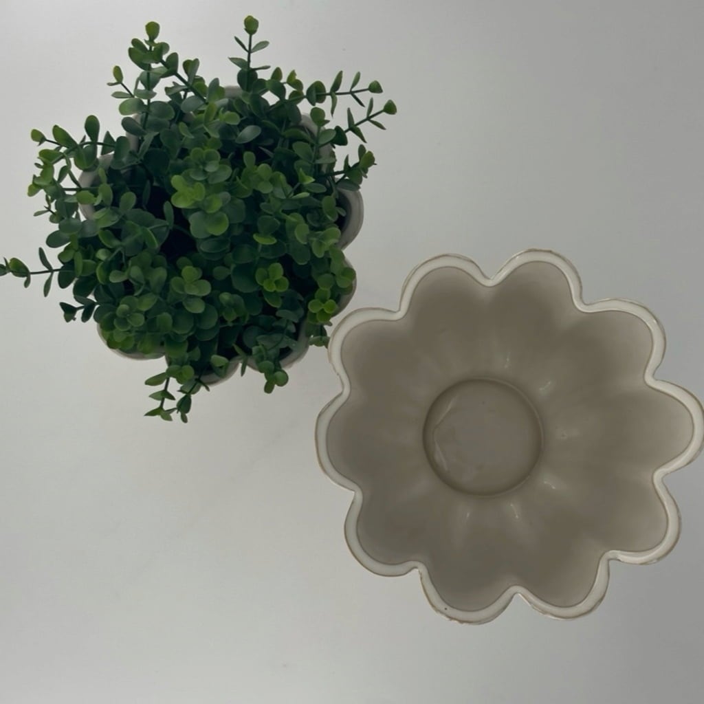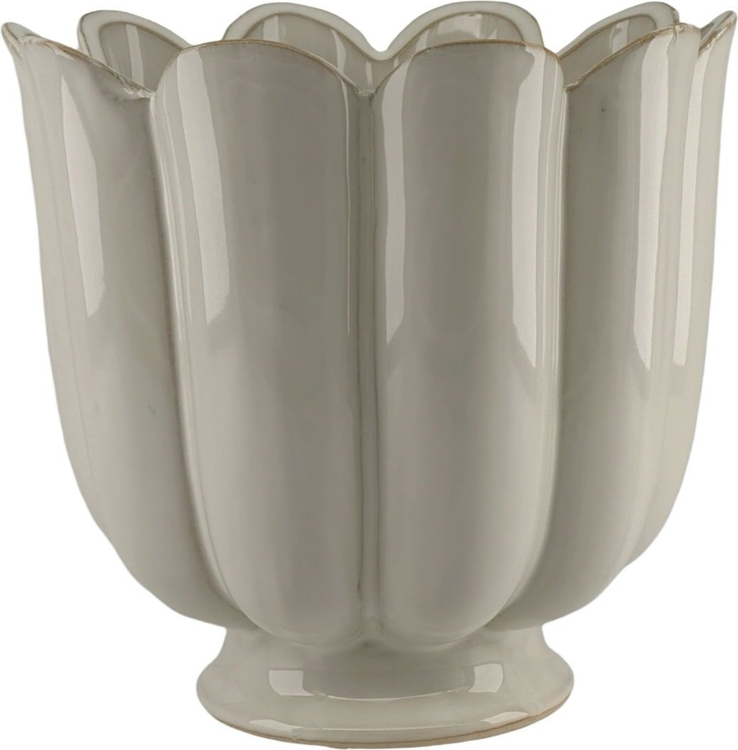 Ytterkrukan ”Petulia” kombinerar modern elegans med genuint hantverk. Varje exemplar är tillverkat i högkvalitativt stengods och har fått sin unika färgton genom en reaktiv glasyr – vilket gör varje kruka till ett unikt konstverk. Den mjukt glansiga, vikta formen lyfter fram dina växter och passar in i många olika inredningsstilar.