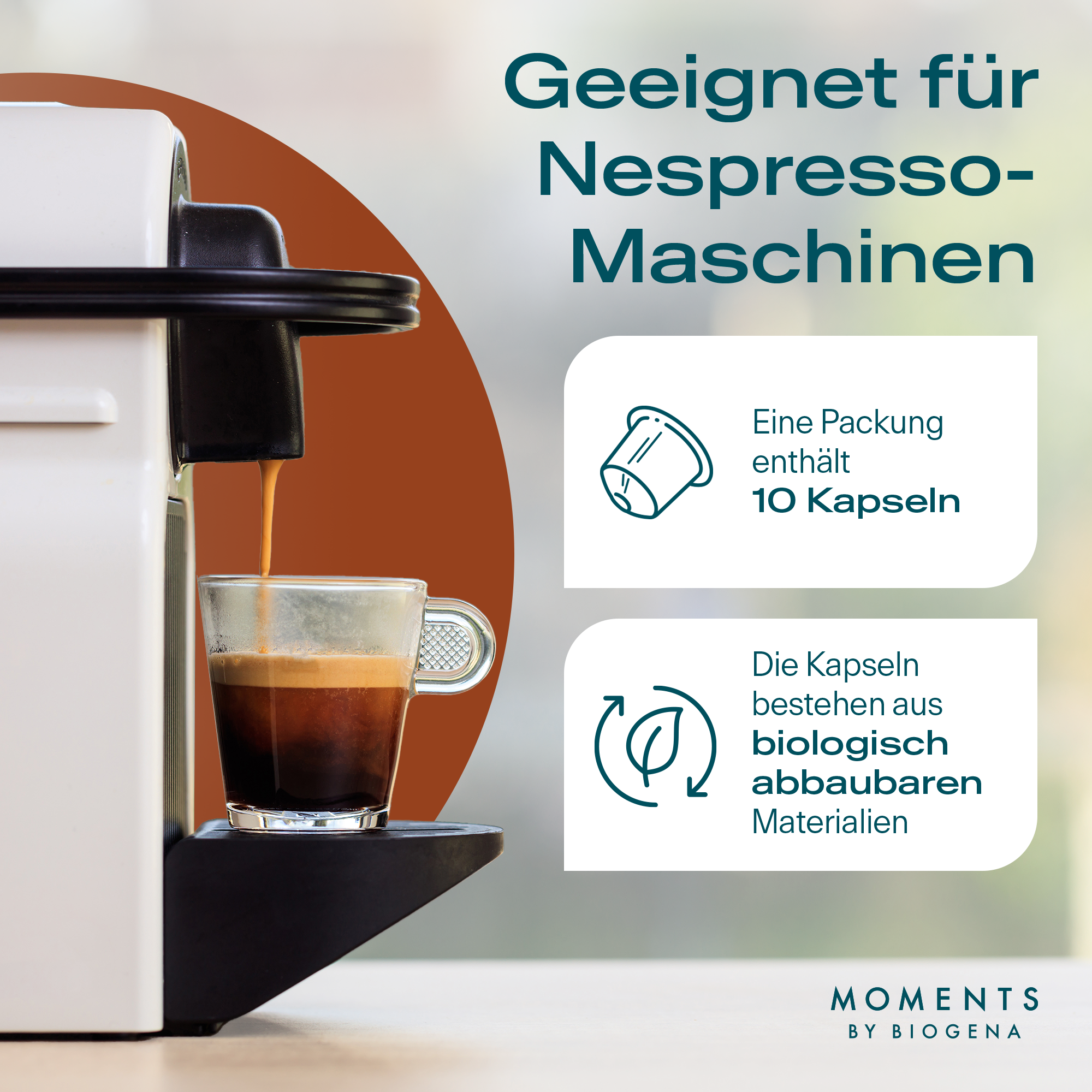 Kapslarna är tillverkade av biologiskt nedbrytbara material och är kompatibla med Nespresso-maskiner. Detta kombinerar förstklassig kaffedrickning med ett gott samvete för miljön.
