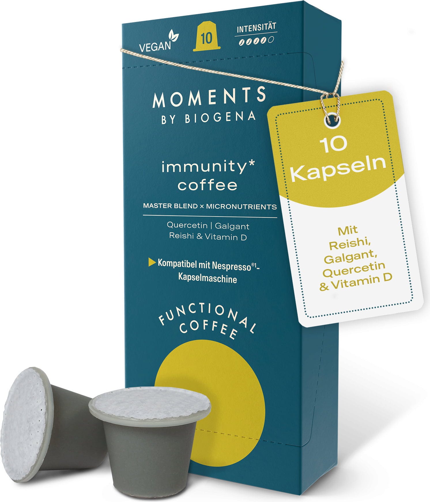Immunity*-kaffet med D-vitamin, quercetin, galangal och reishi svamp revolutionerar den dagliga kaffeupplevelsen och ger en ny accent till njutningen. Den omisskännliga smaken kombinerar ett välbalanserat recept med enkel och användarvänlig användning.
