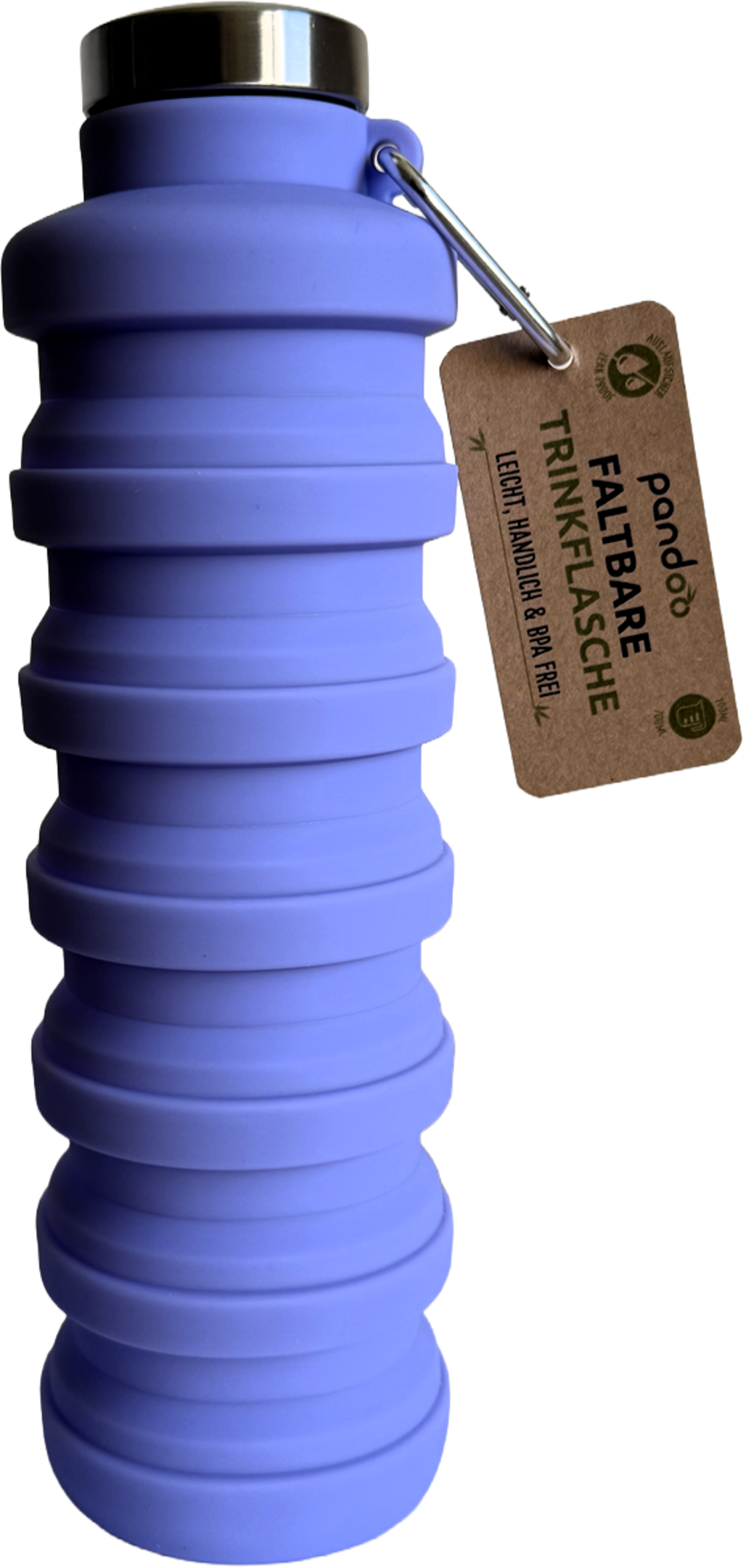 Den här hopfällbara dricksflaskan i silikon är den perfekta följeslagaren när du är på språng, oavsett om du reser eller sportar. Den är superpraktisk och kompakt och kan minskas till cirka en tredjedel av sin volym och har dessutom en karbinhake så att du enkelt kan fästa den på ryggsäcken. Flaskan är läckagesäker, även med kolsyrade drycker, och tål maskindisk. Den perfekta lösningen för alla som älskar att resa och är engagerade i hållbarhetsfrågor.