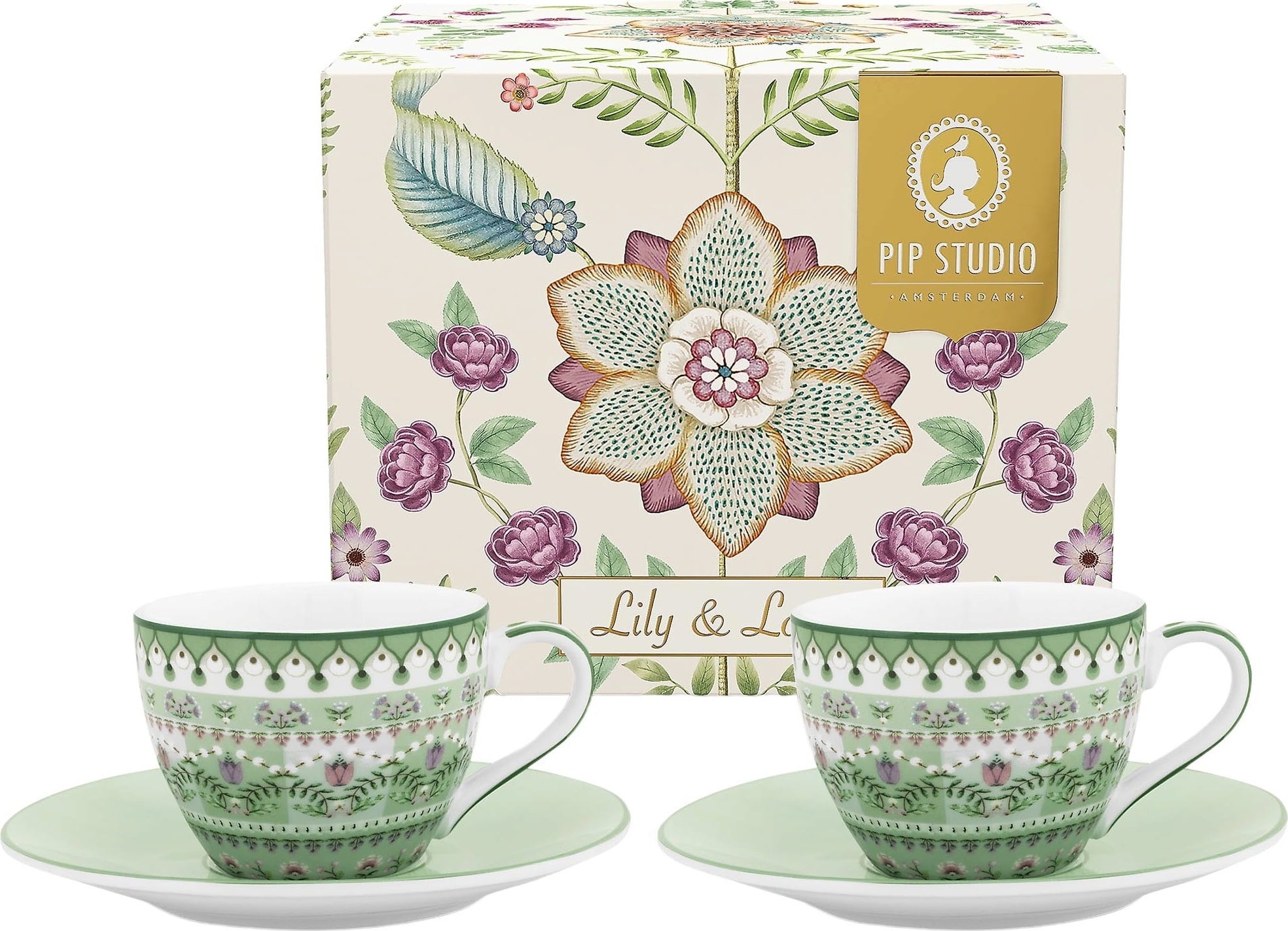 Pip Studio Espressokoppar & Fat 2-Pack Lily & Lotus, Ljusgrön (120 ml)