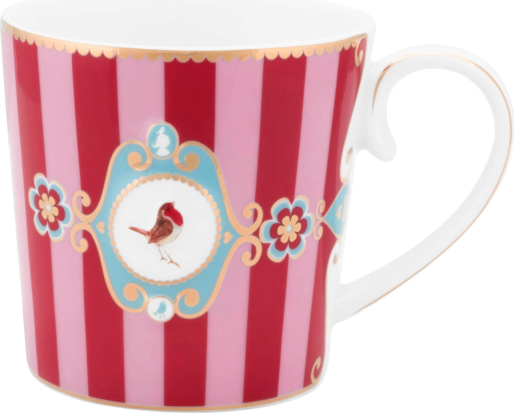 Pip Studio Love Birds Kopp Randig Stor, Röd/Rosa (250 ml)