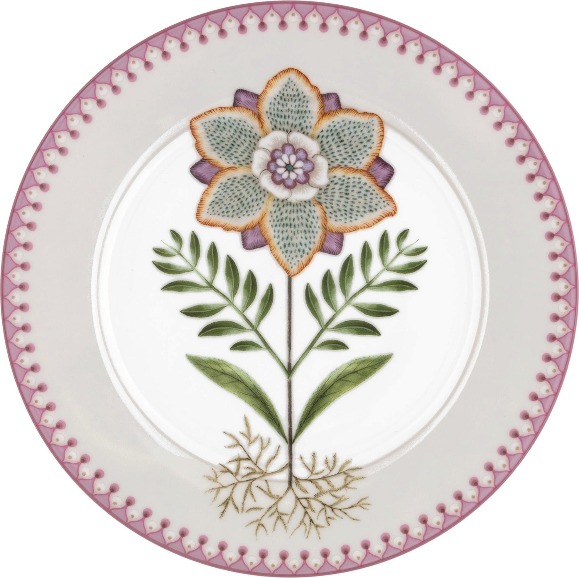 Upptäck denna förtjusande frukost- eller desserttallrik från Lily & Lotus-kollektionen av Pip Studio! Tallriken är dekorerad med ett fantastiskt liljemotiv i mjuka pastelltoner som pryder mitten. Den detaljrika blomman och dess eleganta former är symmetriskt placerade och ger tallriken en modern men tidlös känsla. Den diskret mönstrade kanten rundar av designen harmoniskt och framhäver dess elegans.