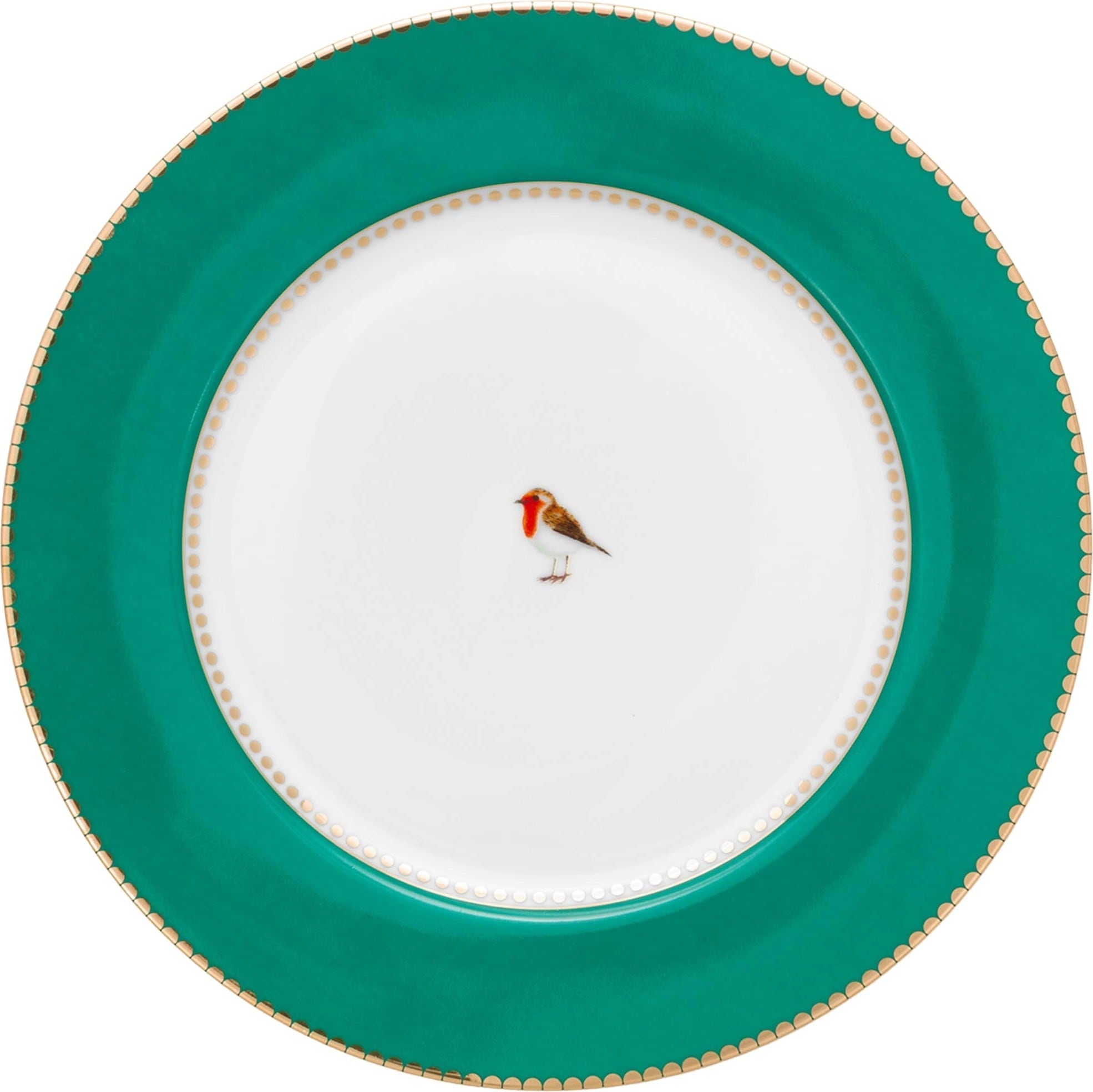 Med dessa charmiga tallrikar från Pip Studio skapar du en vackert dukad bordsmiljö! En grön kant samt gyllene detaljer ramar in den söta rödhaken i mitten och ger designen en elegant men lekfull känsla. Tillverkad av fint porslin blir tallriken en stilfull blickfångare på bordet och kan enkelt kombineras med andra produkter ur Love Birds-kollektionen!