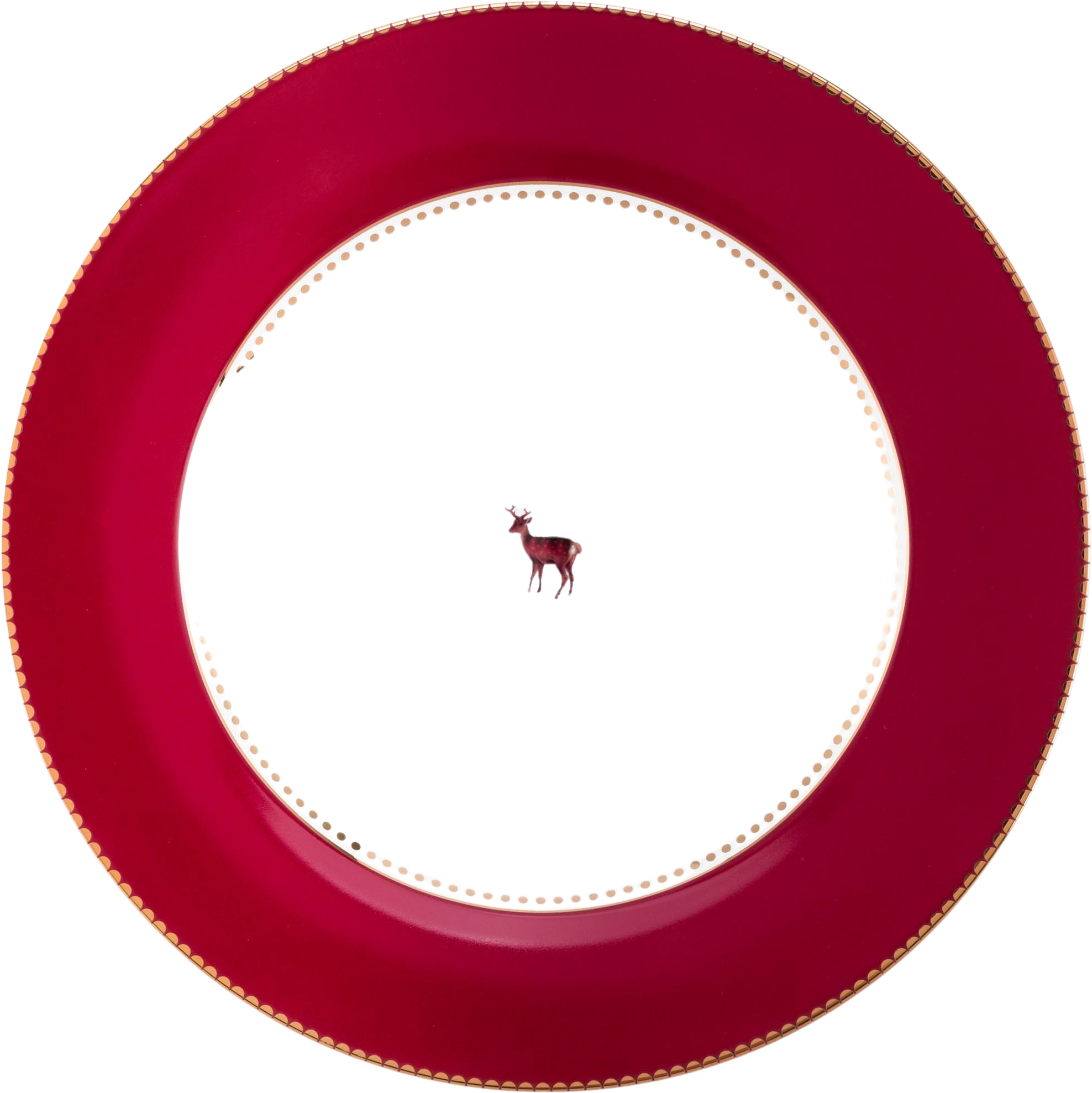 Med dessa charmiga tallrikar från Pip Studio skapar du en vackert dukad bordsmiljö! En djupröd kant och gyllene detaljer ramar in den söta hjorten i mitten och ger designen en elegant och lekfull känsla. Tillverkad av fint porslin är denna tallrik en härlig blickfångare på bordet – särskilt under julen!