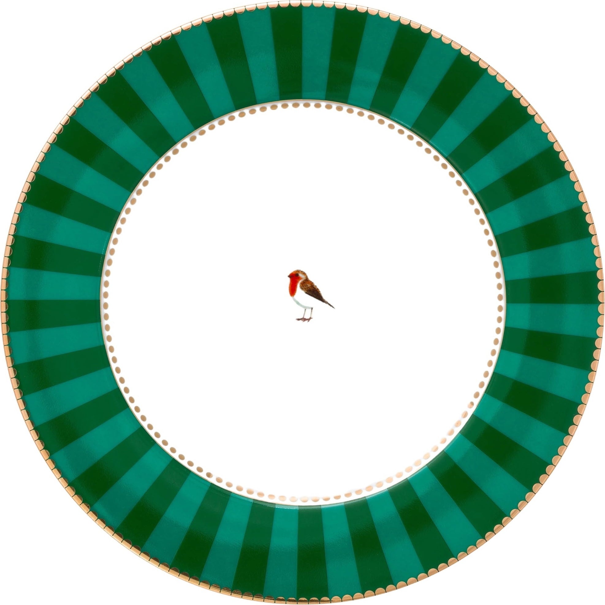 Pip Studio Tallrik Love Birds Randig Grön, 21 cm