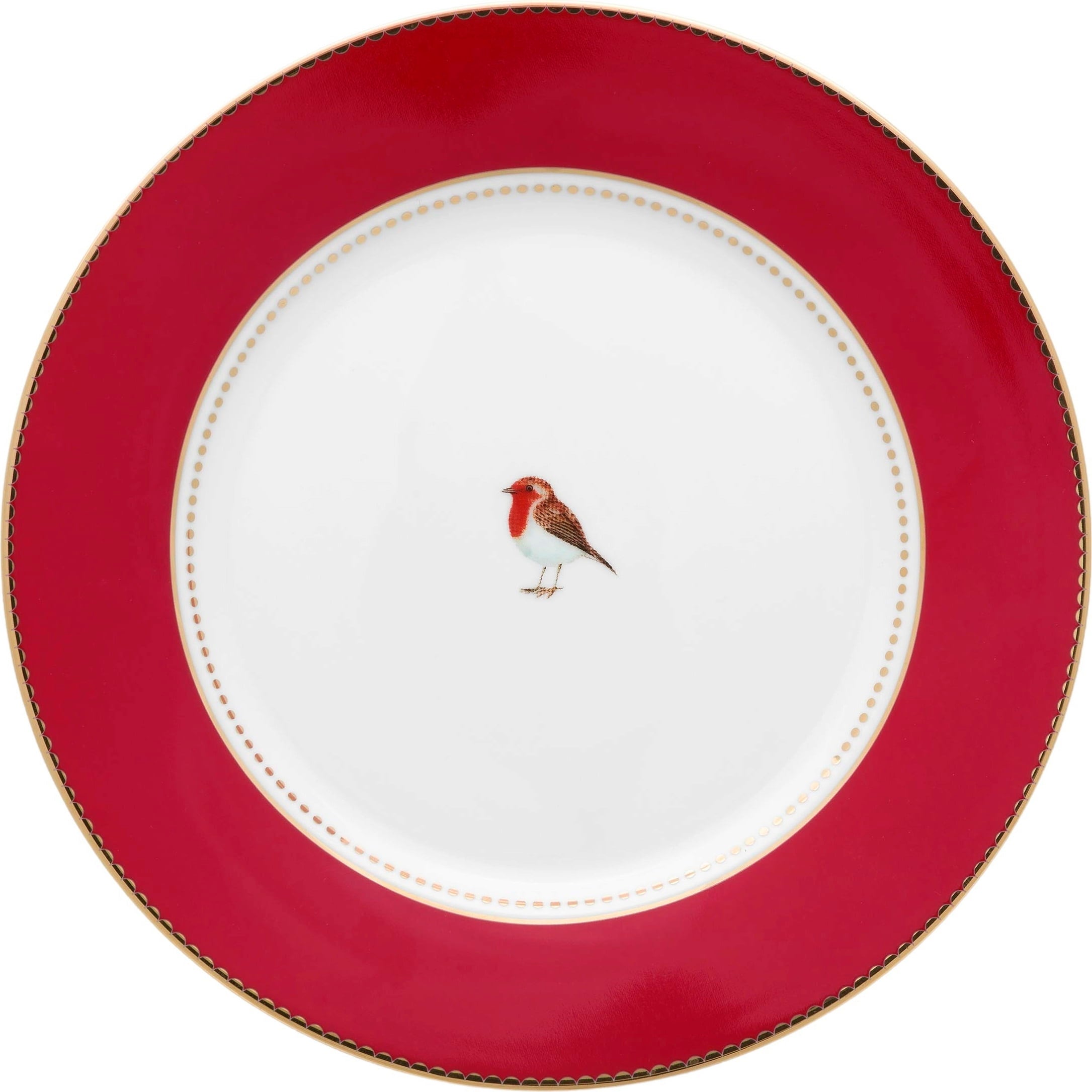 Med dessa charmiga tallrikar från Pip Studio skapar du en vackert dukad bordsmiljö! En djupröd kant samt gyllene detaljer ramar in den söta rödhaken i mitten och ger designen en elegant men lekfull känsla. Tillverkad av fint porslin blir tallriken en stilfull blickfångare på bordet och kan enkelt kombineras med andra produkter ur Love Birds-kollektionen!