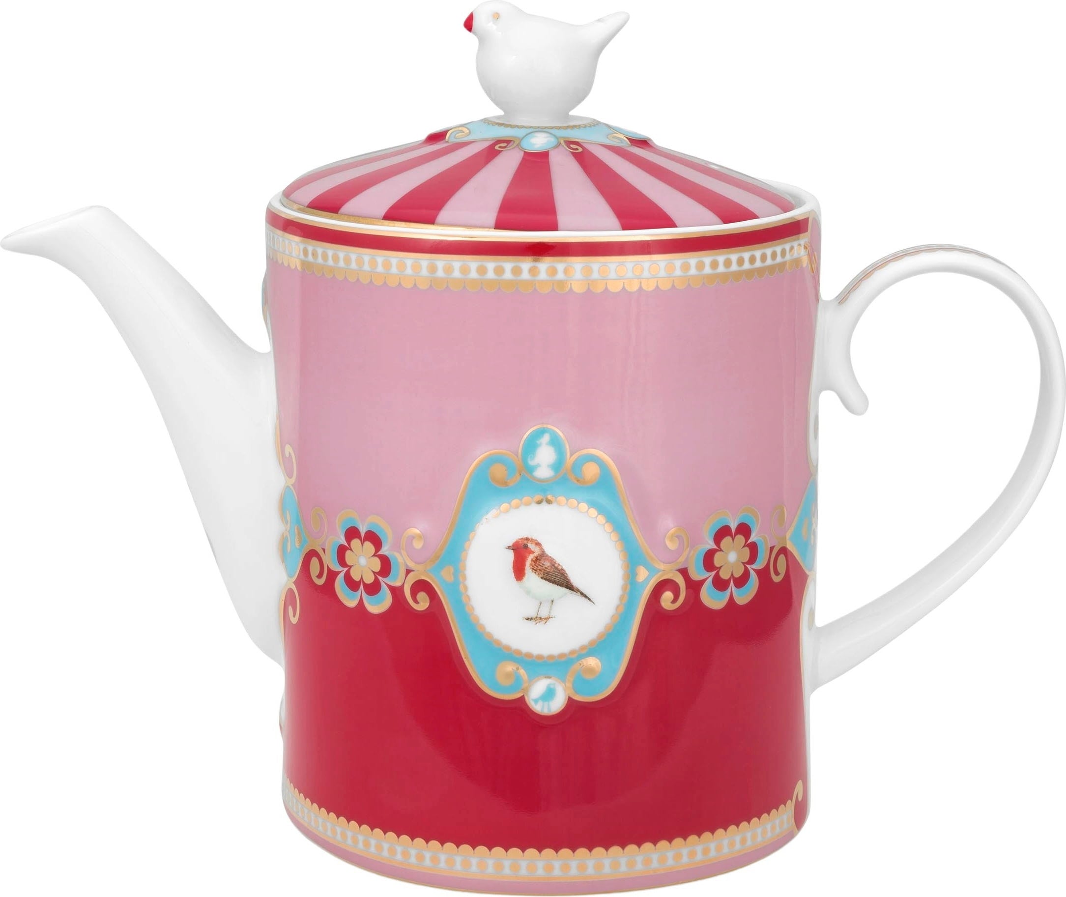 Med denna tekanna från Pip Studio är du redo för nästa te-stund! Tillverkad av högkvalitativt, fint porslin imponerar den med sin charmiga design. Perfekt samstämda färgtoner, fina ornament, gyllene detaljer och ett medaljongmotiv med relief som framhäver den söta rödhaken.