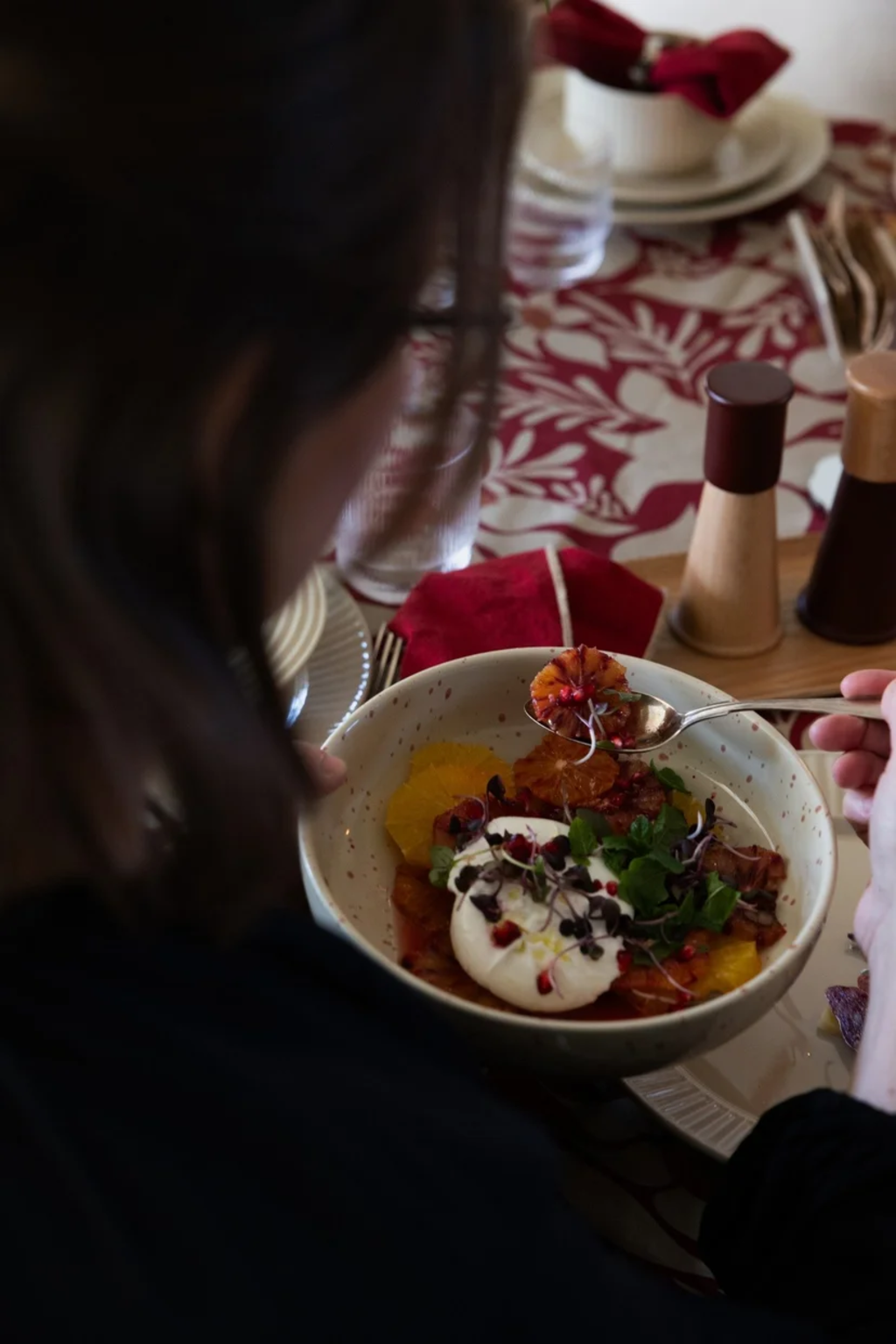 Serveringsskålen Ditte från Sagaform lyfter fram snacks och tillbehör på ett elegant sätt. Tillverkad för hand i stengods av hög kvalitet, vilket gör varje skål unik. Den beige basen med fina bordeauxfärgade stänk matchar alla typer av porslin och passar utmärkt ihop med Coffee & More-serien.