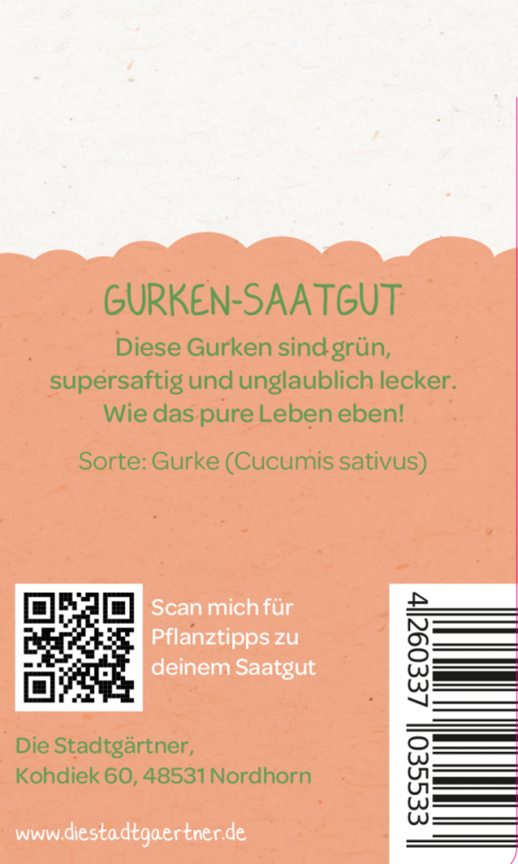 Den här hälsningen innehåller frön av sorten Darina (Cucumis sativus). De kan sås utomhus efter sista frosten – direkt i jord, i kruka eller mot spaljé. Välj en vindskyddad plats med näringsrik jord. Sorten behöver mycket vatten och trivs bäst med stöd från ett klätterstöd. Darina ger mörkgröna, upp till 25 cm långa frukter som är helt fria från bitterhet.