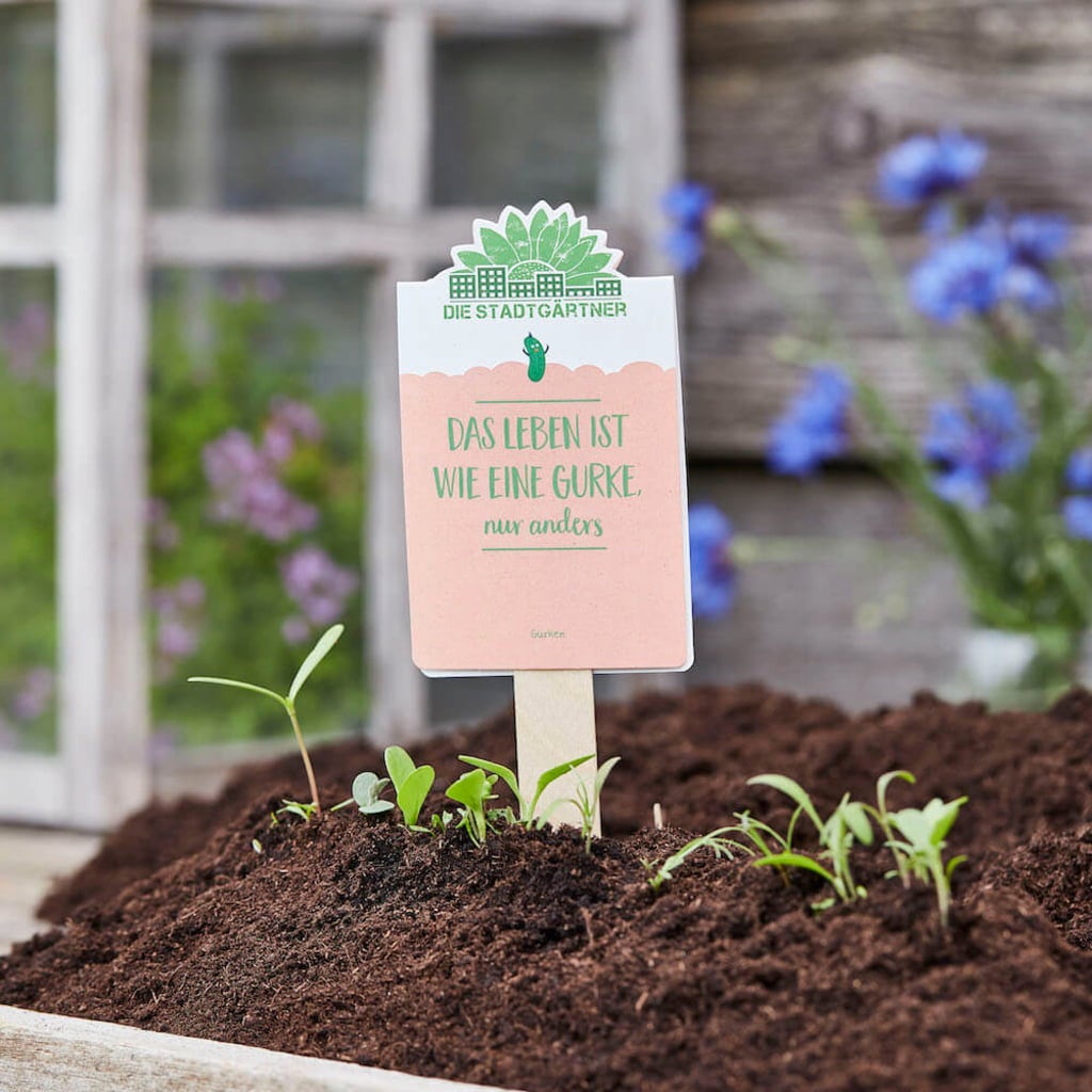 När livet ger dig gurkor – gör en god sallad, lägg dem på en smörgås eller ät dem som de är! Vad du än gör så kommer de garanterat smaka. Vill du låta någon annan ta del av gurklyckan? Då är den här gurkhälsningen helt rätt. En uppmuntrande hälsning och frö till krispiga gurkor – allt i ett.