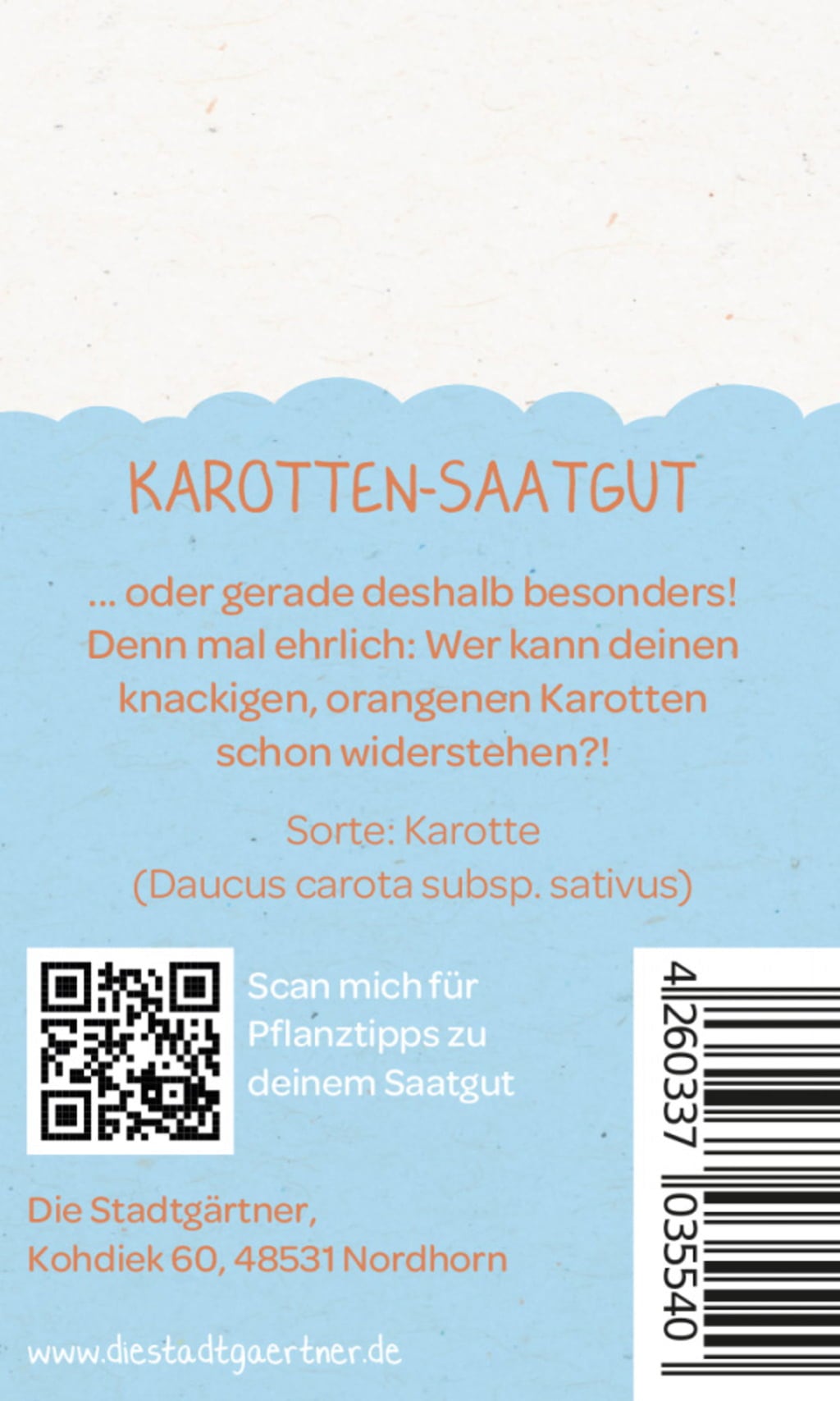 Fröhälsningen innehåller morotsfrön av sorten Sugar Snax (Daucus carota ssp. sativus). Sås direkt i friland eller i kruka. Förbered jorden cirka 14 dagar innan sådd genom att luckra upp den, vattna och blanda i lite kompostjord. Blötlägg fröna i ljummet vatten i 48 timmar före sådd. Placera dem därefter i ca 1 cm djupa rader. Vattna en till två gånger i veckan – och efter cirka tre veckor tittar de första groddarna upp.