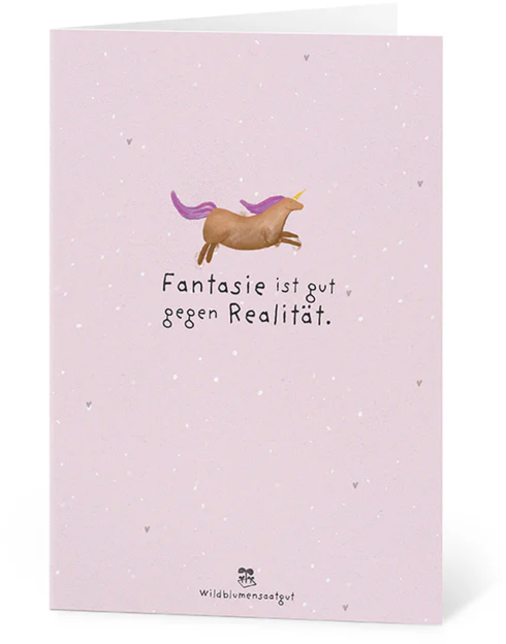 Fantasi är bra mot verkligheten! Det här kortet är en påminnelse – med glimten i ögat – om att drömmar ibland är precis vad vi behöver. Det sprider lätthet, färg och ger tillåtelse att bara försvinna in i något härligt en stund.
