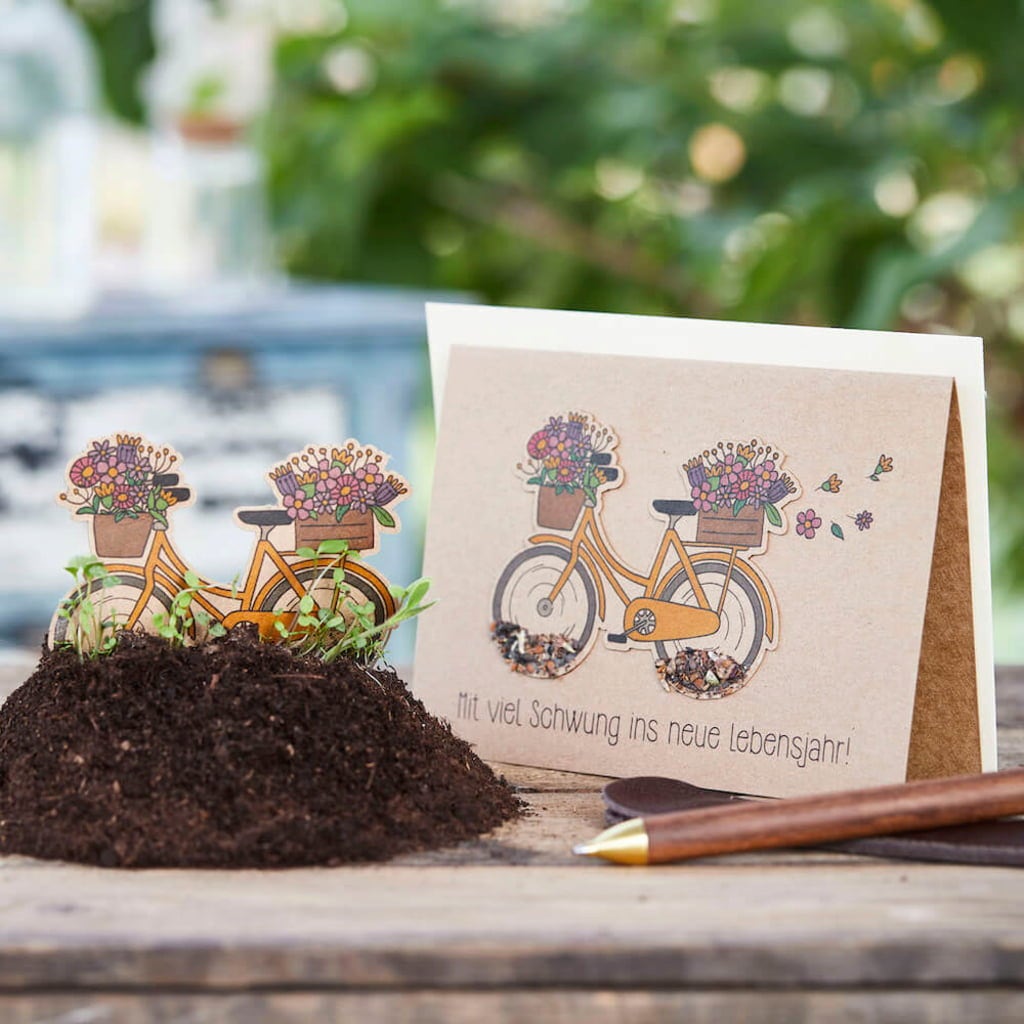 Hälsningskort med Fröpinne "Mit Schwung ins neue Lebensjahr"