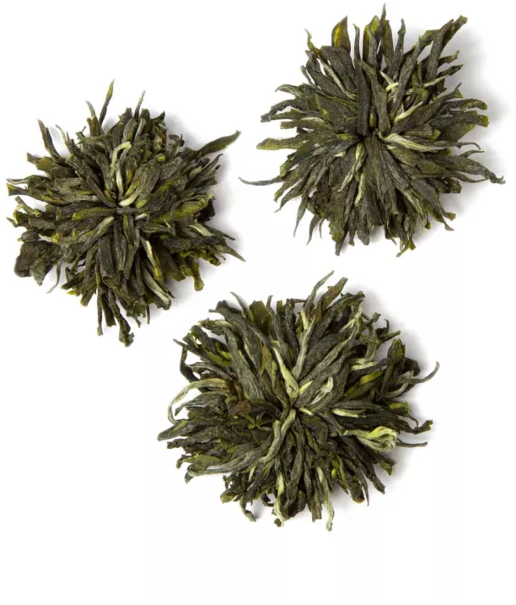 För tesällsyntheten Lu Mu Da n binds det kinesiska gröna teet till små terosor. Självklart bearbetat för hand. Det handplockade materialet kommer från temästaren Wang Delongs Damaoshan teträdgård. En teträdgård från Jiangxi-provinsen och dedikerad till ekologisk teodling.