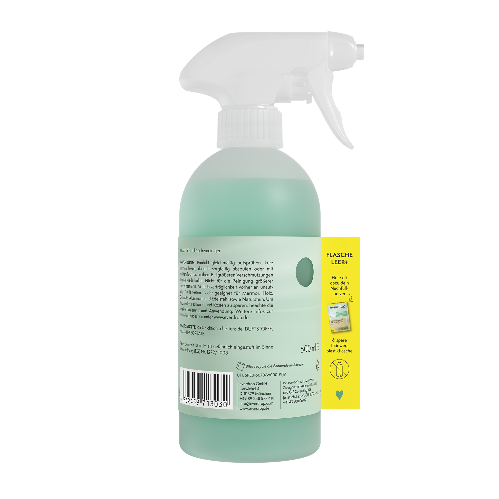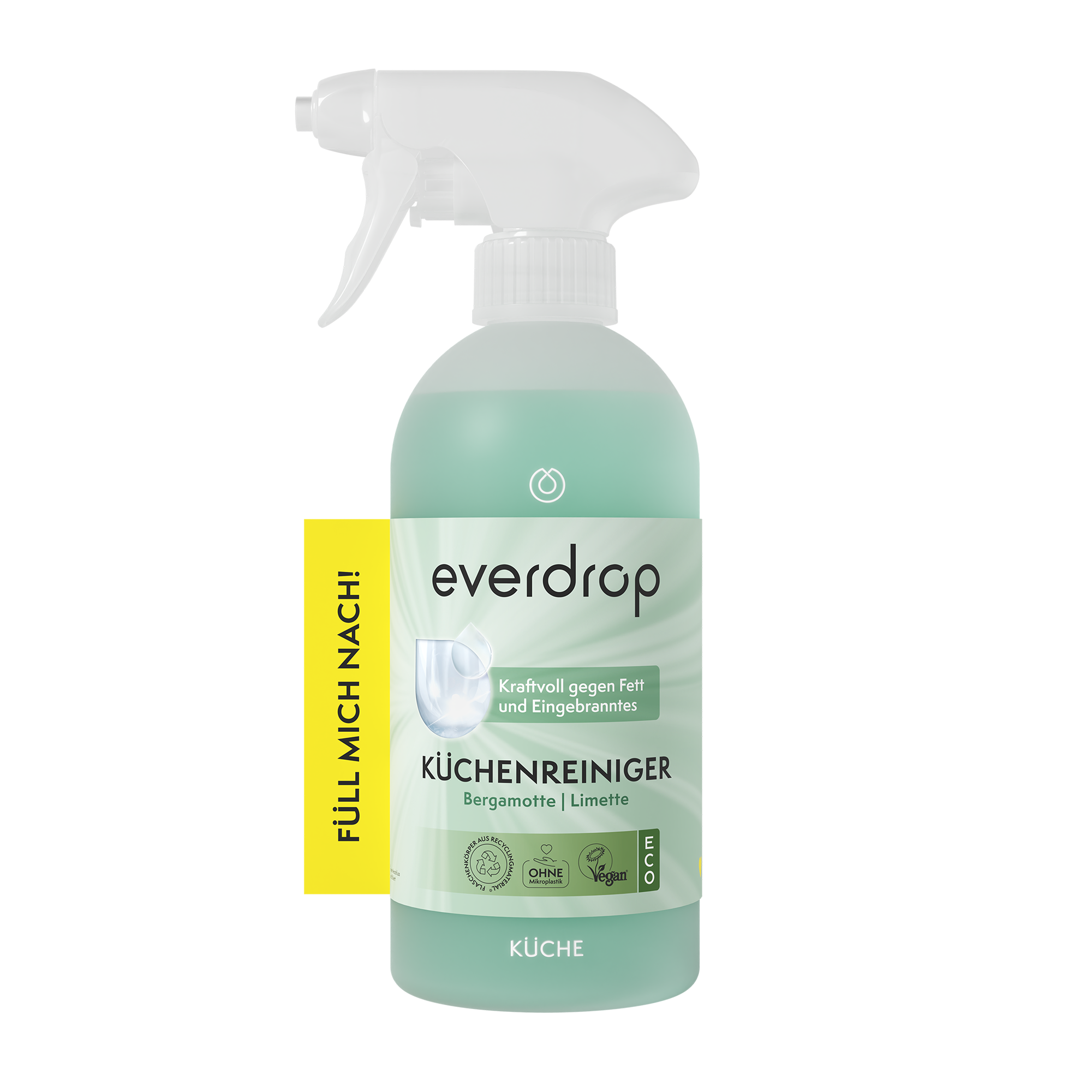 Denna köksrengöring är den perfekta lösningen för envis smuts som fett, fastbränd mat och fläckar i köket. Tack vare de naturliga ingredienserna kan du på ett säkert sätt rengöra inte bara köket utan även kylskåpet och alla ytor som kommer i kontakt med mat. Den behagliga doften av bergamott och lime gör rengöringen till ett nöje. Men det är inte allt: du kan återanvända flaskan och fylla på den med refillpulver från everdrop. Så du kan inte bara få ditt kök att skina, utan också ditt miljöavtryck.