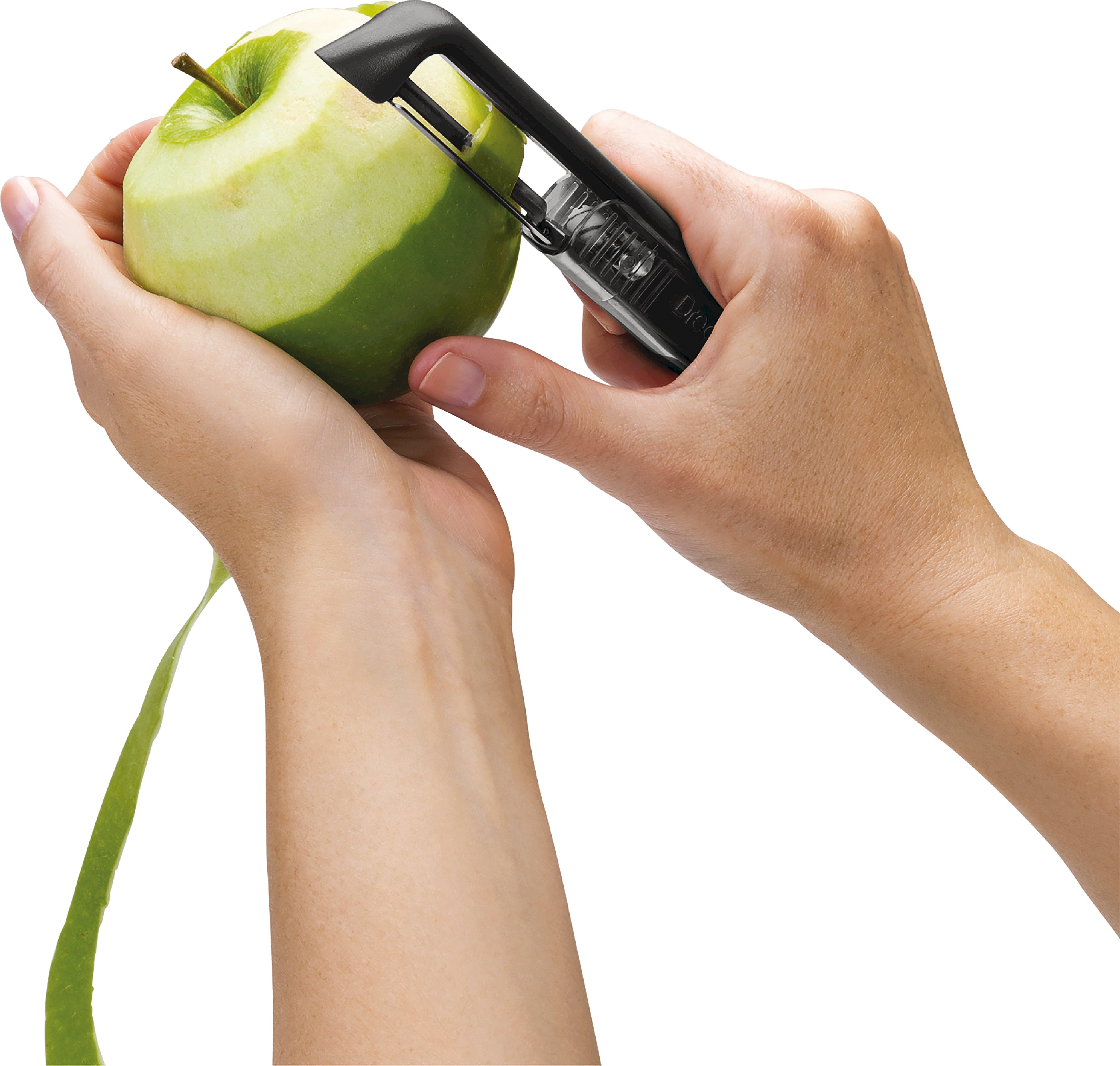 Skalaren Sharple från Dreamfarm är utrustad med ett rakbladsskarpt blad i japanskt rostfritt stål som tack vare sin rörliga upphängning ger minimalt svinn. Den stora höjdpunkten är det innovativa skyddet: varje gång du öppnar eller stänger skyddet slipar en inbyggd keramisk kulslip automatiskt bladet. Därför glider du enkelt genom skal på frukt och grönsaker vid varje användning, medan den integrerade potatisögonborttagaren snabbt tar bort ojämnheter. Oavsett om du är höger- eller vänsterhänt ligger detta ergonomiska redskap perfekt i handen och kan enkelt diskas i diskmaskin efter användning.