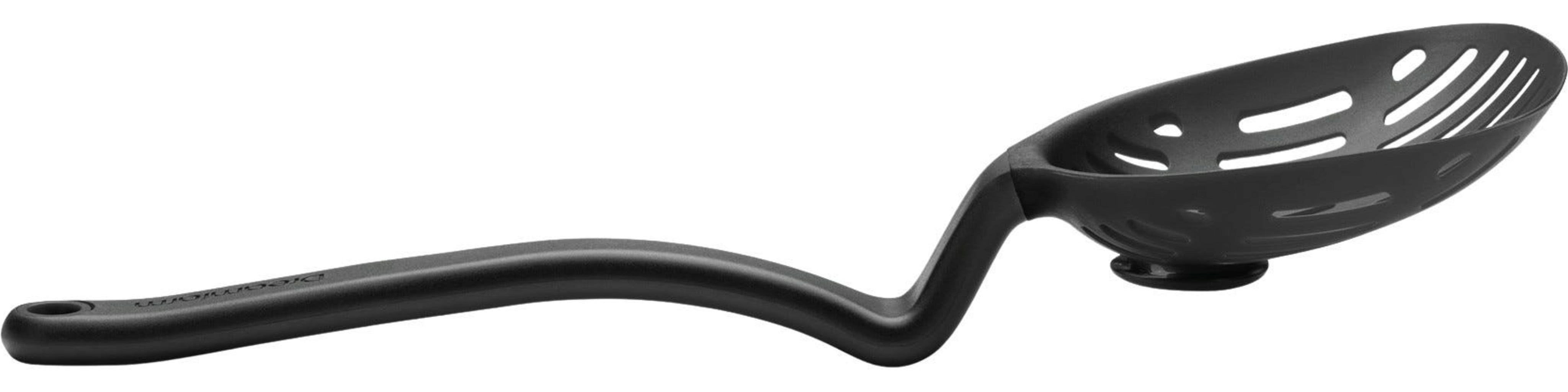 Tack vare det innovativa handtaget med böj svävar skedhuvudet över ytan så att du kan lägga ner det rent utan direktkontakt med arbetsbänken. Det ergonomiska greppet gör denna slitstarka nylonhjälp till en perfekt partner för effektiv matlagning.