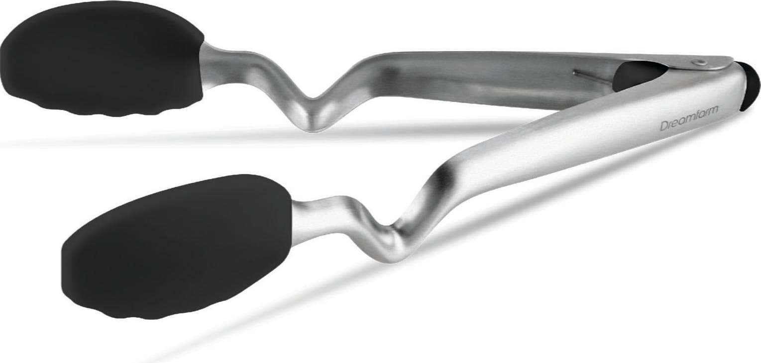 Tången Clongs från Dreamfarm är en smart lösning för både matlagning och servering. Tack vare den unika böjen i handtaget vidrör tånghuvudena aldrig arbetsytan när du lägger ner den. Med den smidiga knappmekanismen i handtagets ände öppnar du tången enkelt och låser den säkert med ett knapptryck.