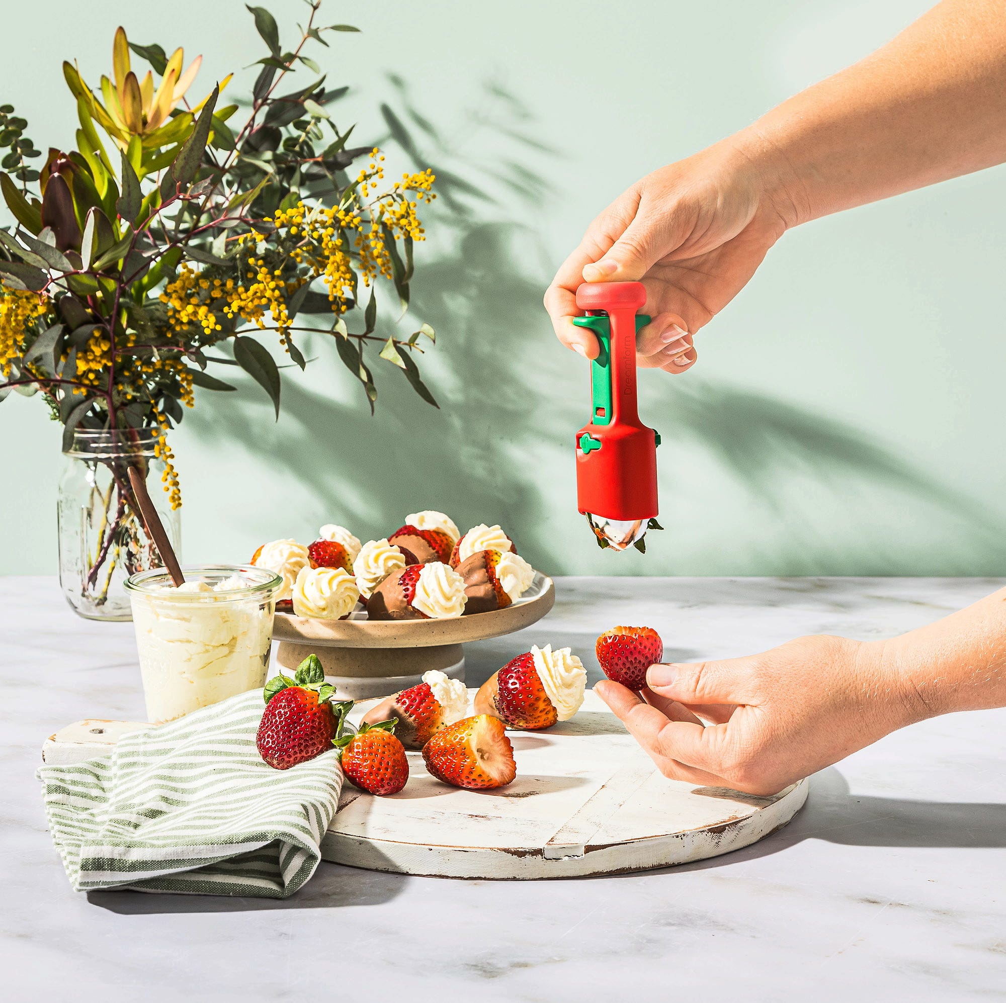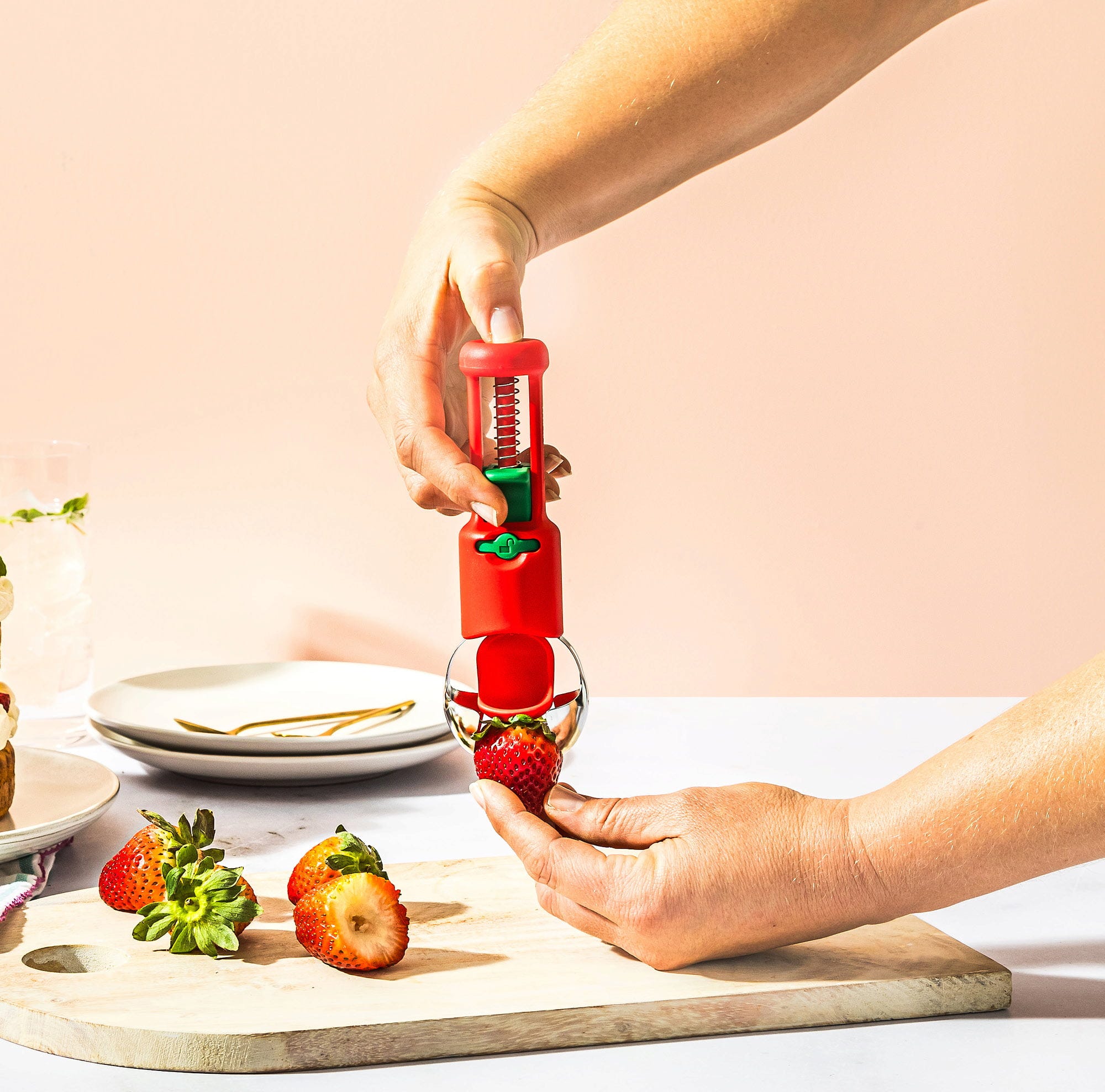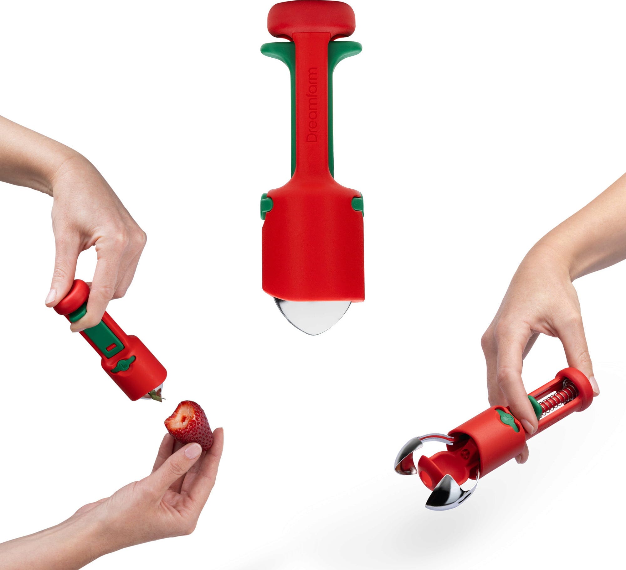 Med Hullapit från Dreamfarm får du en genial 3-i-1-urkärnare till köket som gör det enkelt att ta bort stjälkar från jordgubbar och snabbt kärna ur körsbär eller oliver. De precisa, koniskt formade bladen i rostfritt stål tar även bort missfärgade partier på bär extra rent, medan den fjäderbelastade tryckmekanismen för kärnorna direkt till den integrerade uppsamlingskammaren.