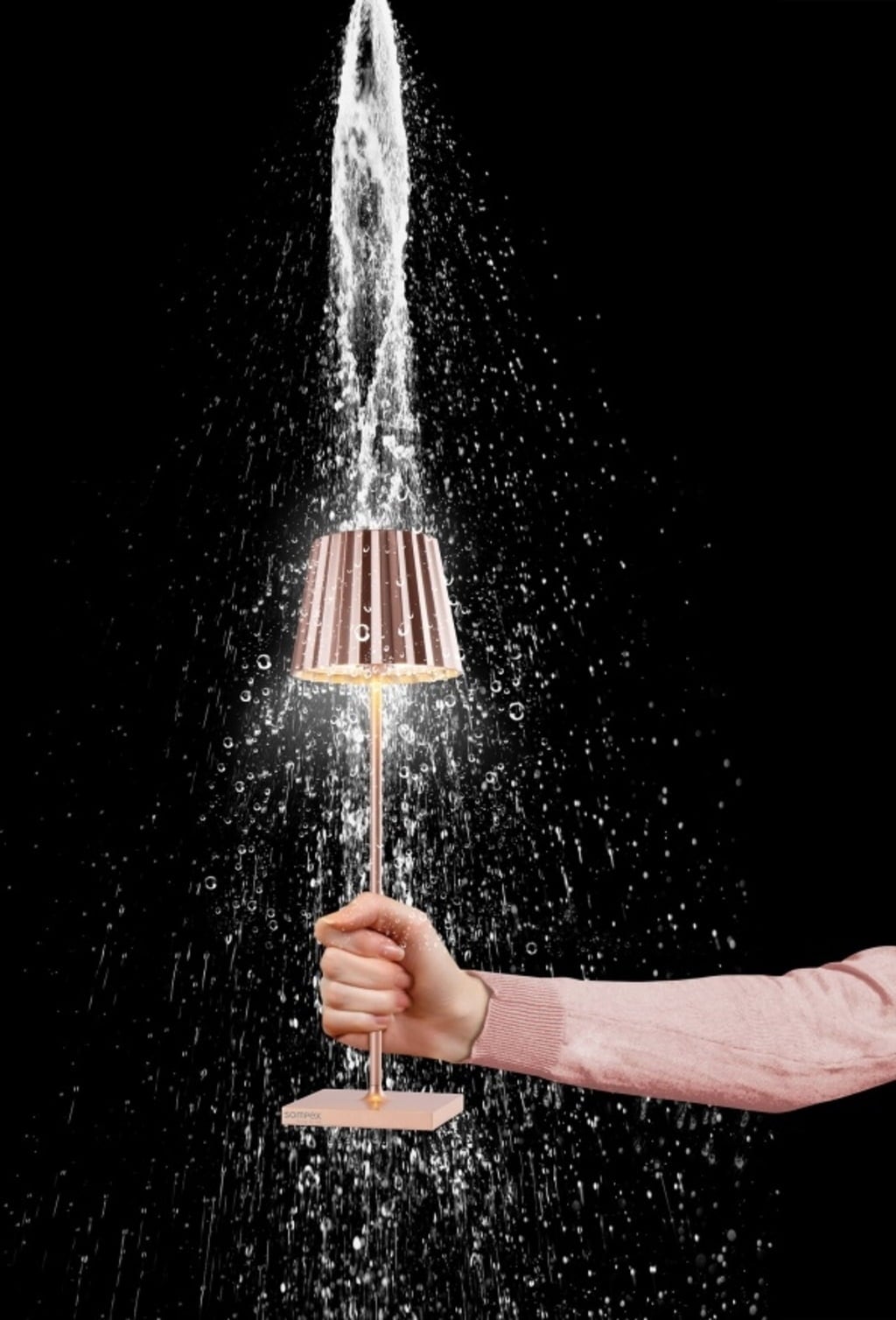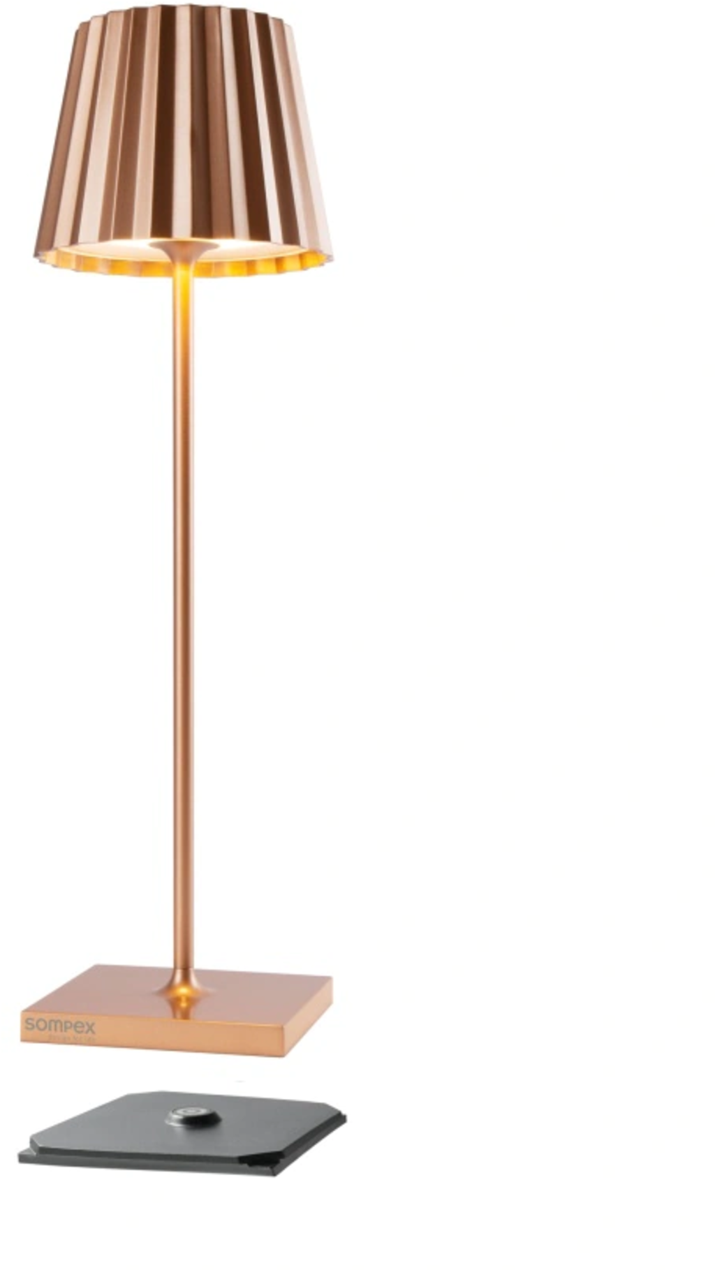 Snygg lampa som ger ljus både inne och ute. Den behöver ingen kabel och kan så ställas fritt.