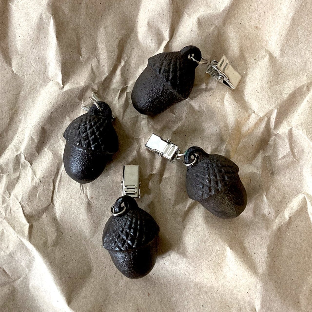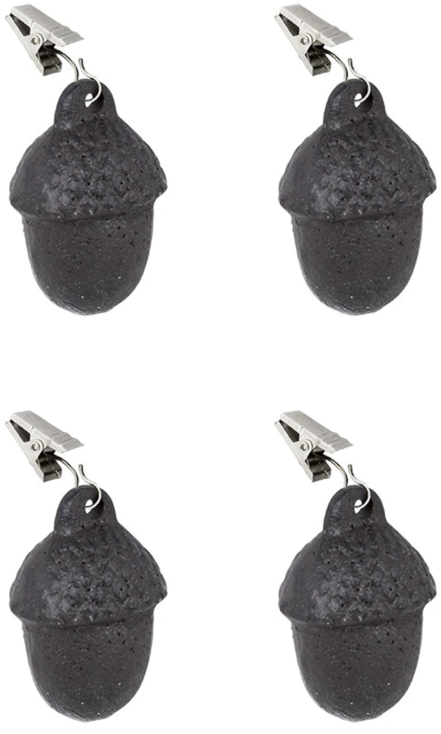 Dessa fyra tunga bordsduksvikter i gjutjärn är räddningen under blåsiga dagar. De fästs enkelt i duken och håller den snyggt på plats. En både praktisk och charmig detalj - formad som små ekollon.