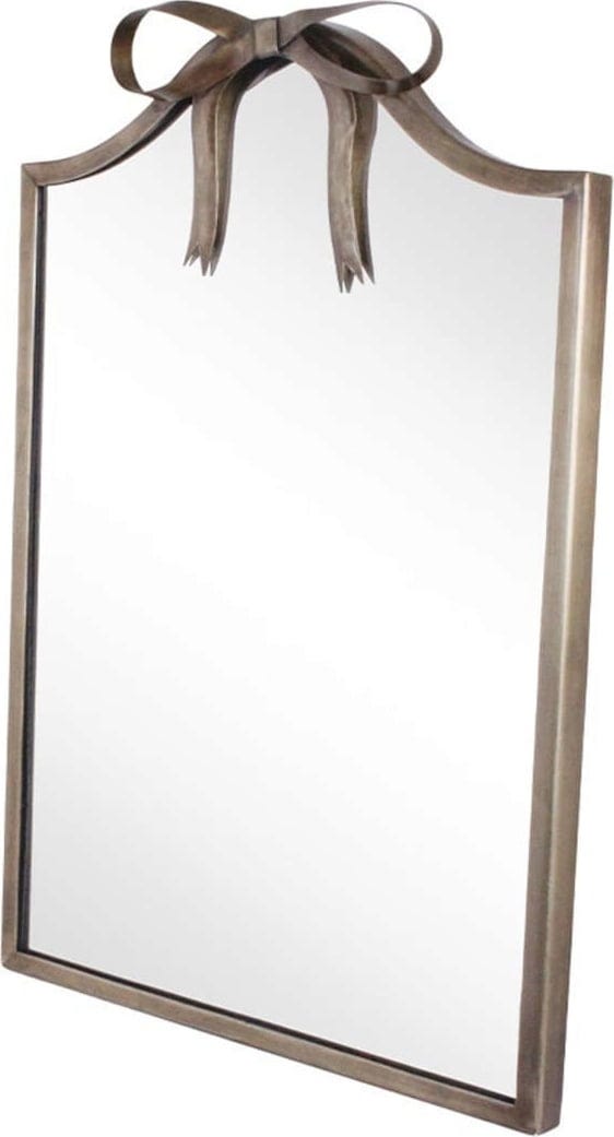 Spegeln ger rummet en varm vintagekänsla med sin ram i antikmässing och den vackra rosetten. Oavsett om den placeras i badrummet, barnrummet eller hallen är den både praktisk och dekorativ. Den tillverkas av erfarna hantverkare under rättvisa förhållanden.