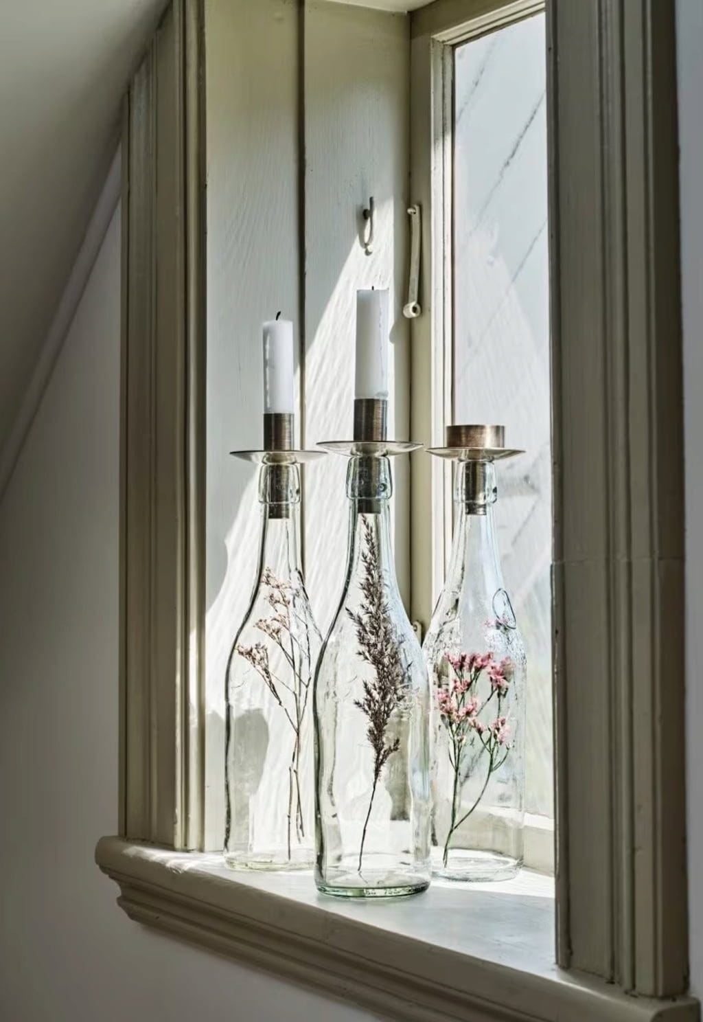 Varför kasta tomma vinflaskor när de kan bli en del av en mysig ljusinstallation? Sätt bara ljushållaren på flaskan och placera ett värmeljus i - avslappnat och stilfullt!