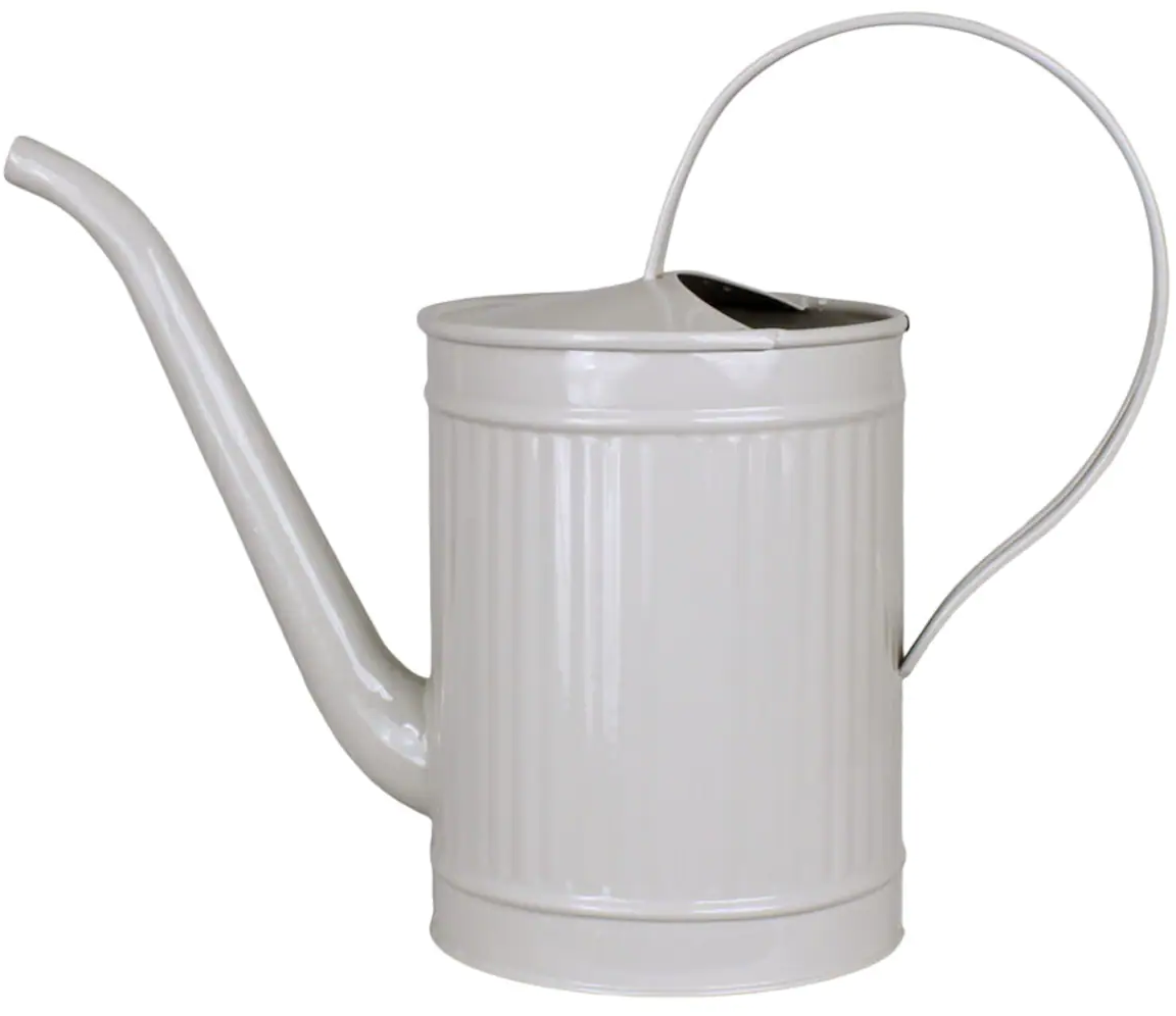 Vacker vattenkanna i lackerad metall med ett elegant räfflat mönster. En riktig pärla som med sitt stora handtag passar utmärkt för att vattna växter inomhus och på balkongen. Vacker nog att stå framme när den inte används.