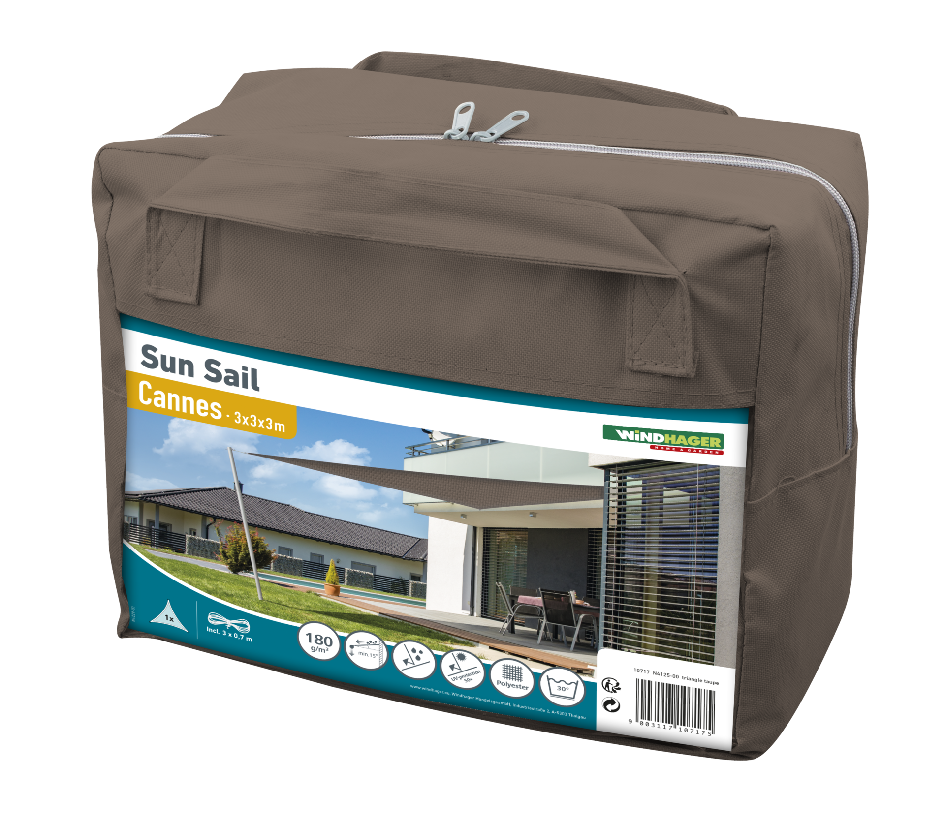 Windhager Solsegel SunSail CANNES Triangel 3x3x3 m, taupe