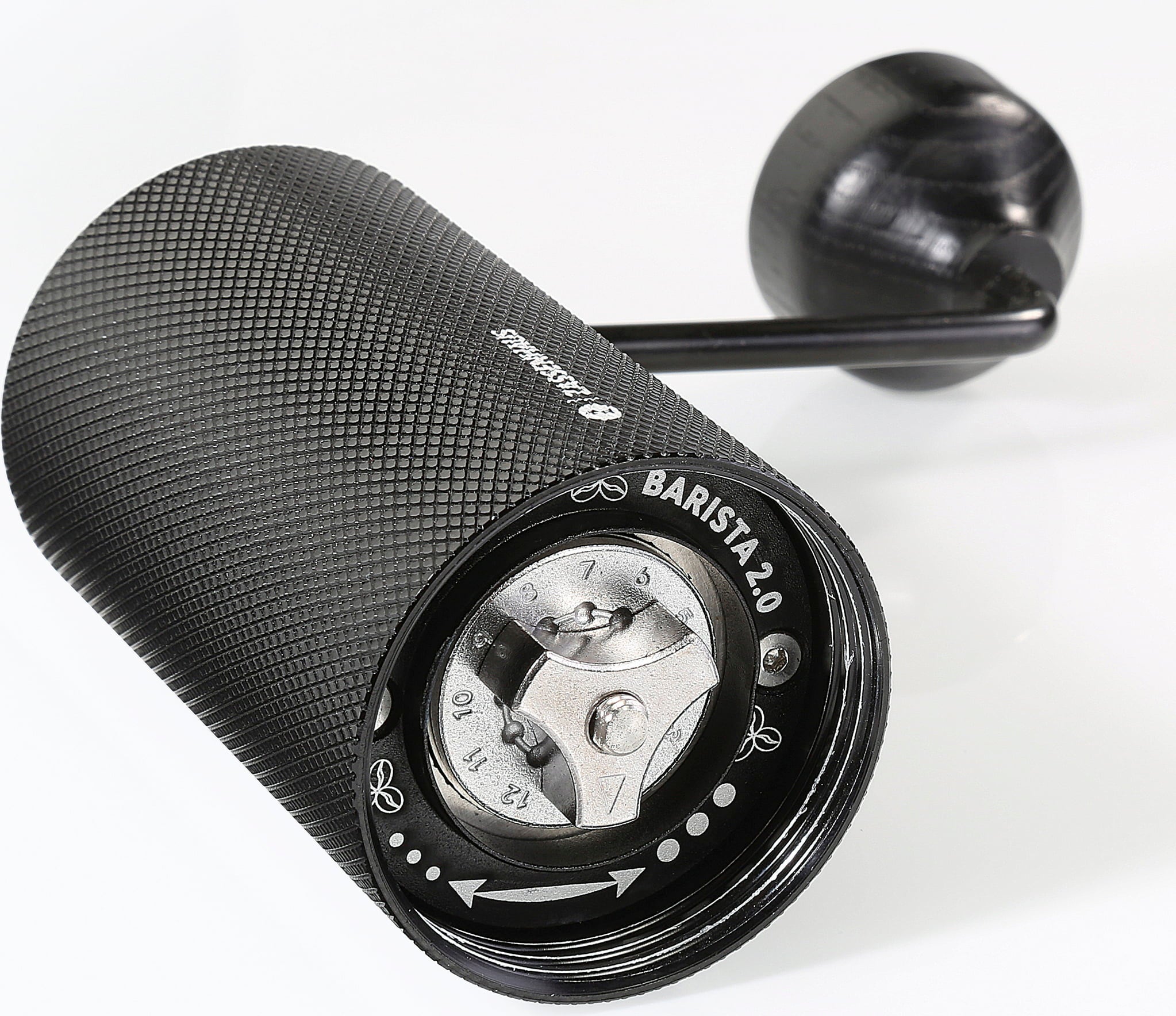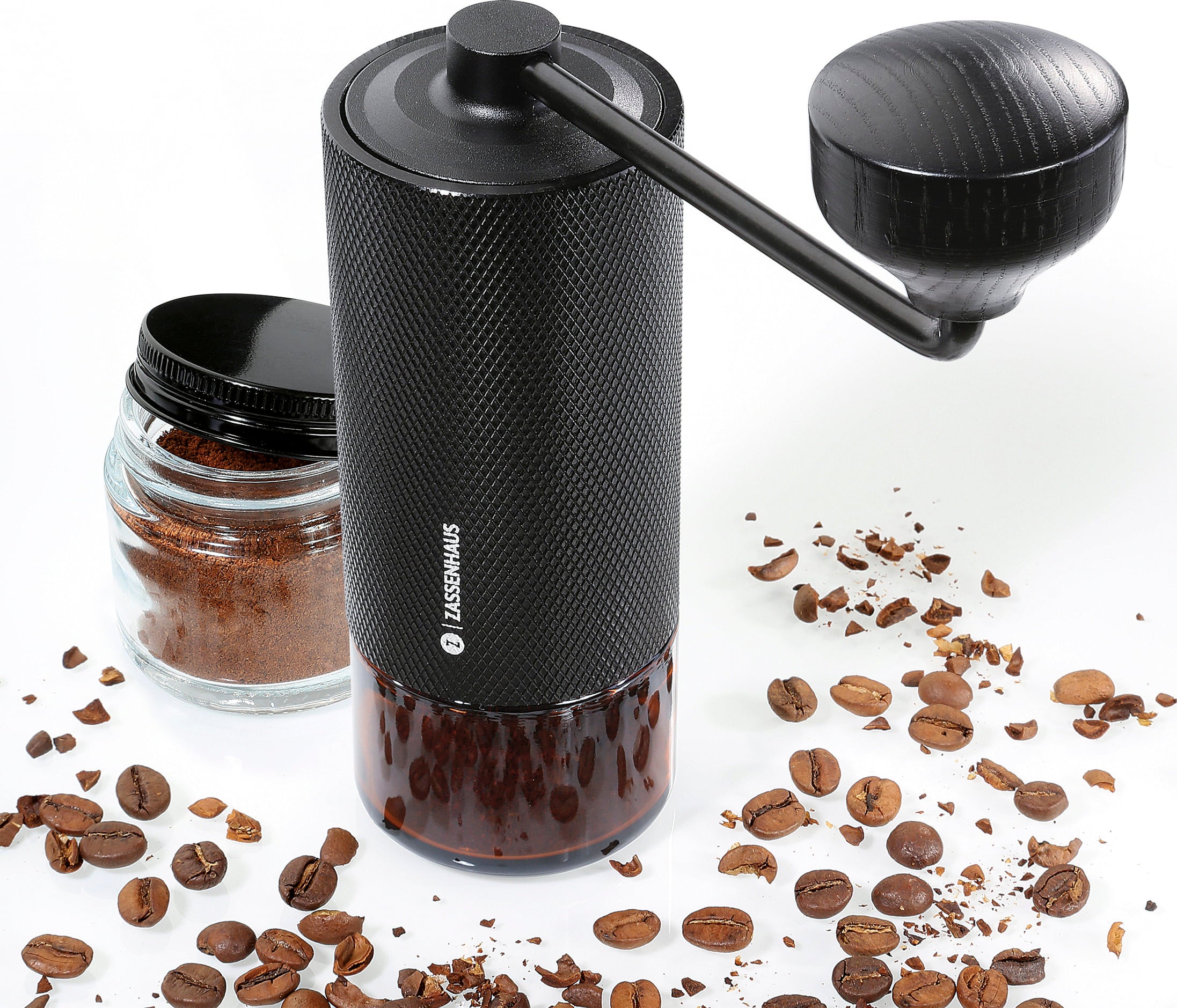 BARISTA 2.0 kaffekvarn från Zassenhaus maler bönor steglöst. Från finmalet för espresso till grövre för bryggkaffe. Tack vare den kullagrade axeln går malningen smidigt och lätt. Med i paketet följer en glaskopp med tätslutande lock, en extra behållare, förvaringspåse och rengöringsborste.